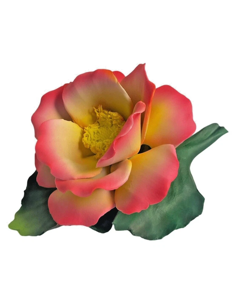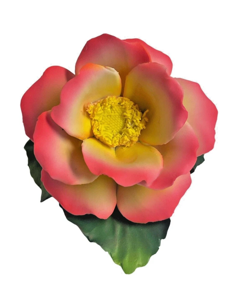 For your consideration, I have a gorgeous Fabar Capodimonte flower figurine (camelia/rose?) in a deep pink with yellow center on a bed of leaves. Excellent condition with no chips or cracks. Measures 5.5" long by just under 3" tall.