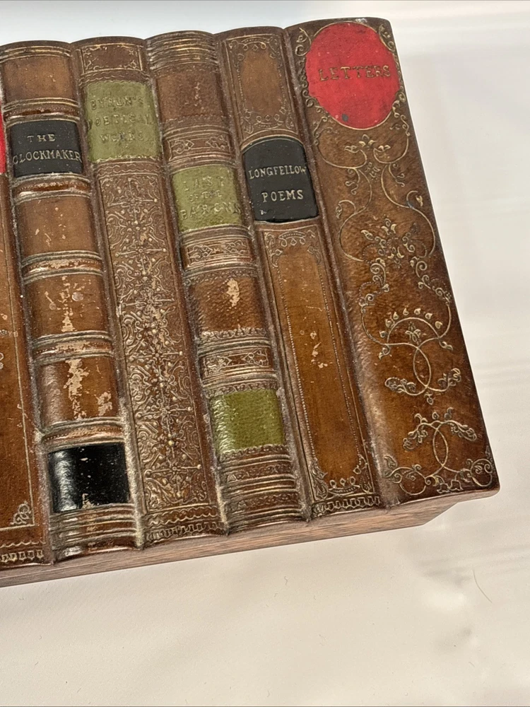 The Vintage Faux Book Spine Box with a rare Firestone top is a unique and charming decorative collectible item. Made of Firestone pottery and wood, this Victorian-style piece showcases a beautifully crafted design that adds a touch of elegance to any space. The boxed feature adds an extra element of interest, making it a standout piece for collectors or those who appreciate vintage decor.