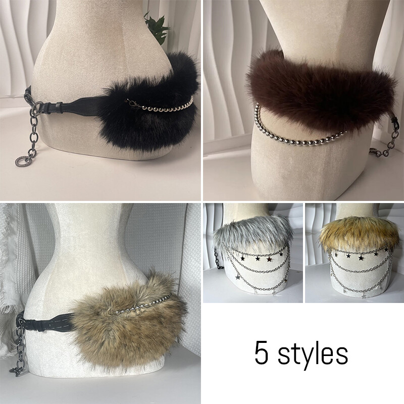 Sizes: 75-95cm is suitable for weight 40kg-60kg 95-110cm is suitable for weight over 60kg, with a hip circumference exceeding 95cm material:faux fur;faux leather