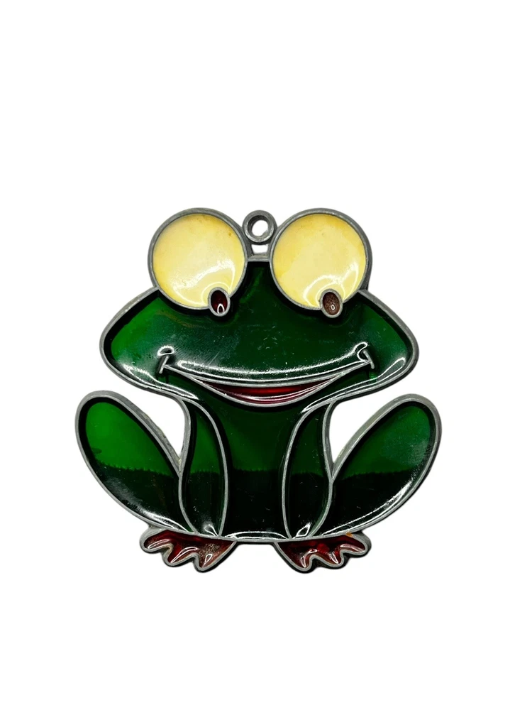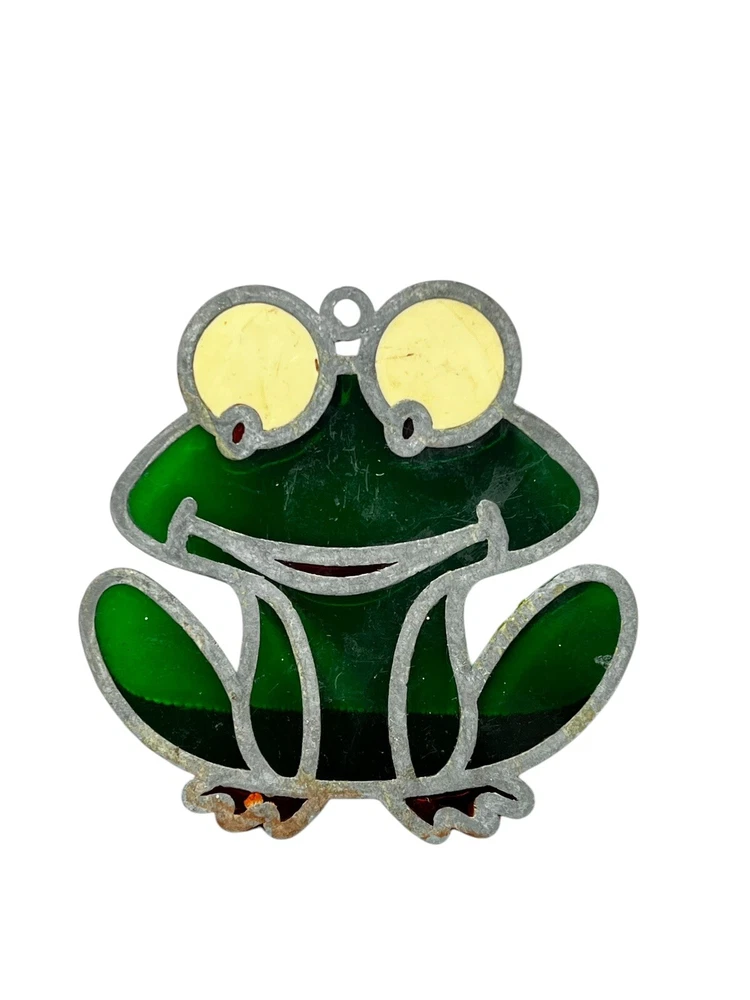Vintage Faux Stained Glass Happy Frog Suncatcher Kitschy Decor Window Hanging 3”. Condition is Used. Shipped with USPS Ground Advantage.