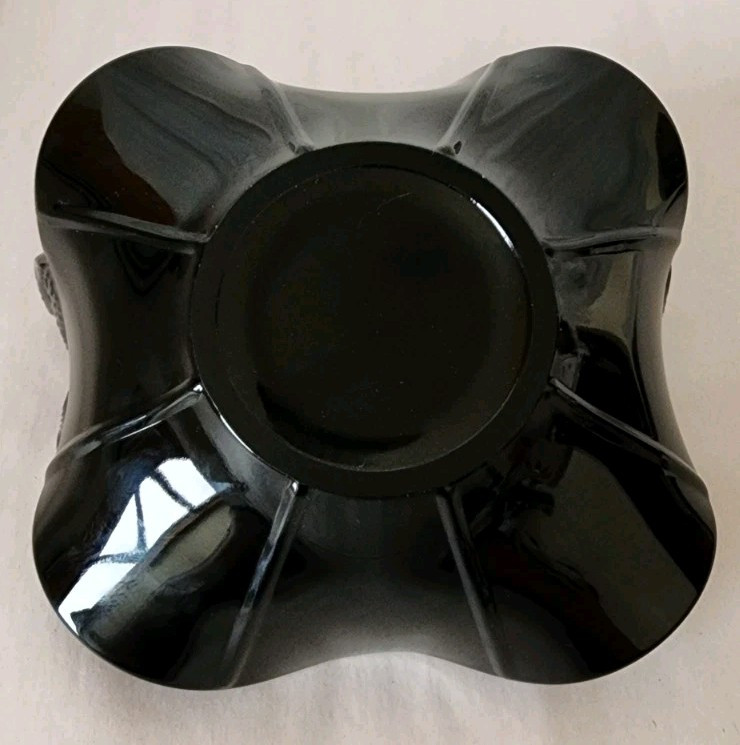 This vintage Fenton trinket dish is a stunning piece of black amethyst glass with a glossy finish. The dish has a square shape with a waved edge and double handles, making it perfect for use as a candy dish or for holding small items such as jewelry. Measuring 2.5 inches in height and 6 inches in width, this dish is compact yet versatile. Crafted with care and precision, this Fenton dish features a production style of amethyst glass and is made of high-quality glass material. Its vintage charm is undeniable, making it a unique addition to any collection or home decor. This dish is perfect for those who appreciate the beauty and craftsmanship of vintage glassware.