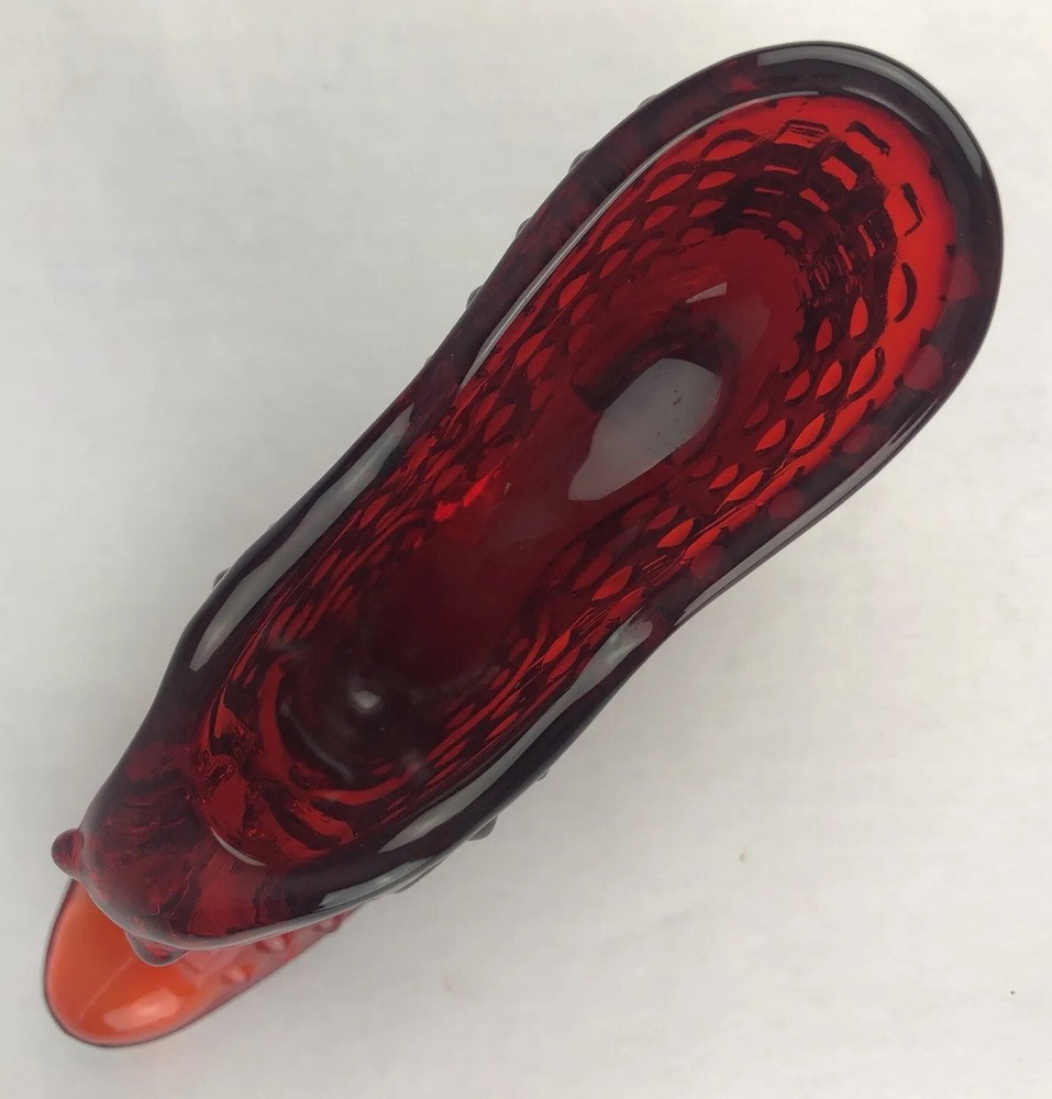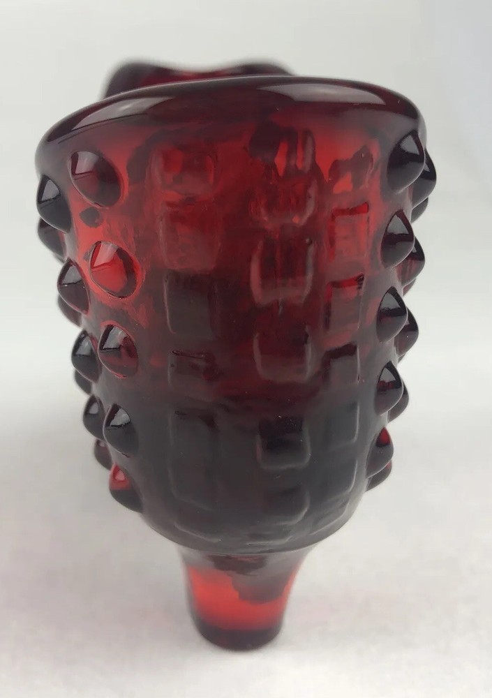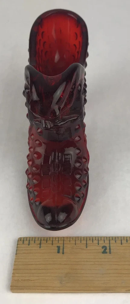 Vintage Fenton Cat Head Slipper ~ Beautiful Ruby Red Hobnail Glass No impressed logo ~ no sticker Measures approx: 3" tall x 5.5" long x 1.5" wide.