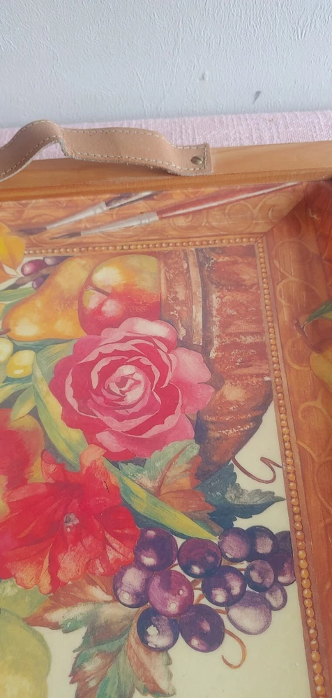 Vintage ALpac Serving Tray Fiberglass/Polyester Resin. Pre-owned, in great condition. Wooden frame does have some wearing. Please,refer to all pictures.