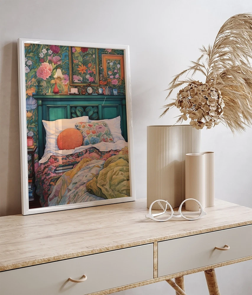 Vintage Floral Bedroom Wall Art Maximalism Painting Bright Colourful Decor Floral Home Decor Art For Living Room Material: Premium luster photo paper Print type: Inkjet printing One side printed + The finish provides the highest possible resolution and color saturation + Lasts up to 200 years in color and 400 years in black-and-white + Printed on high-quality resin-coated photo base paper medium + Posters can be hung with double-sided tape, tacks, or framed + Hand washing with a gentle cry cloth is recommended for extended durability I will hand select the best choice of paper for your chosen design to ensure top quality results for a beautiful, bright and luxurious print. All prints are sealed in cellophane slips for protection during transportation, and are shipped in a protective cardboard envelope.