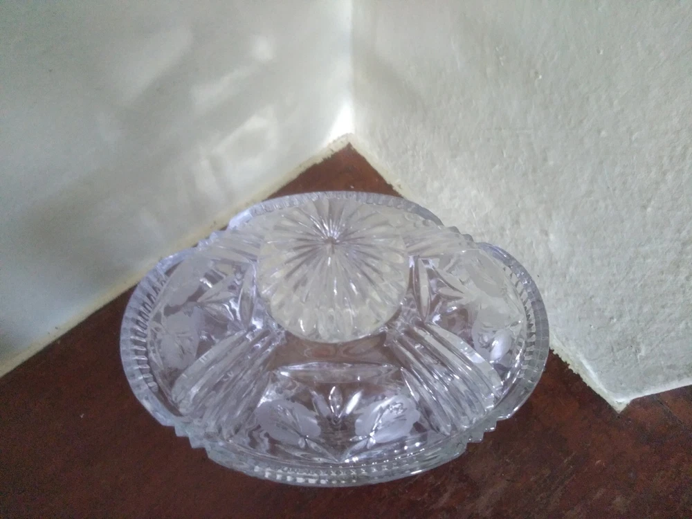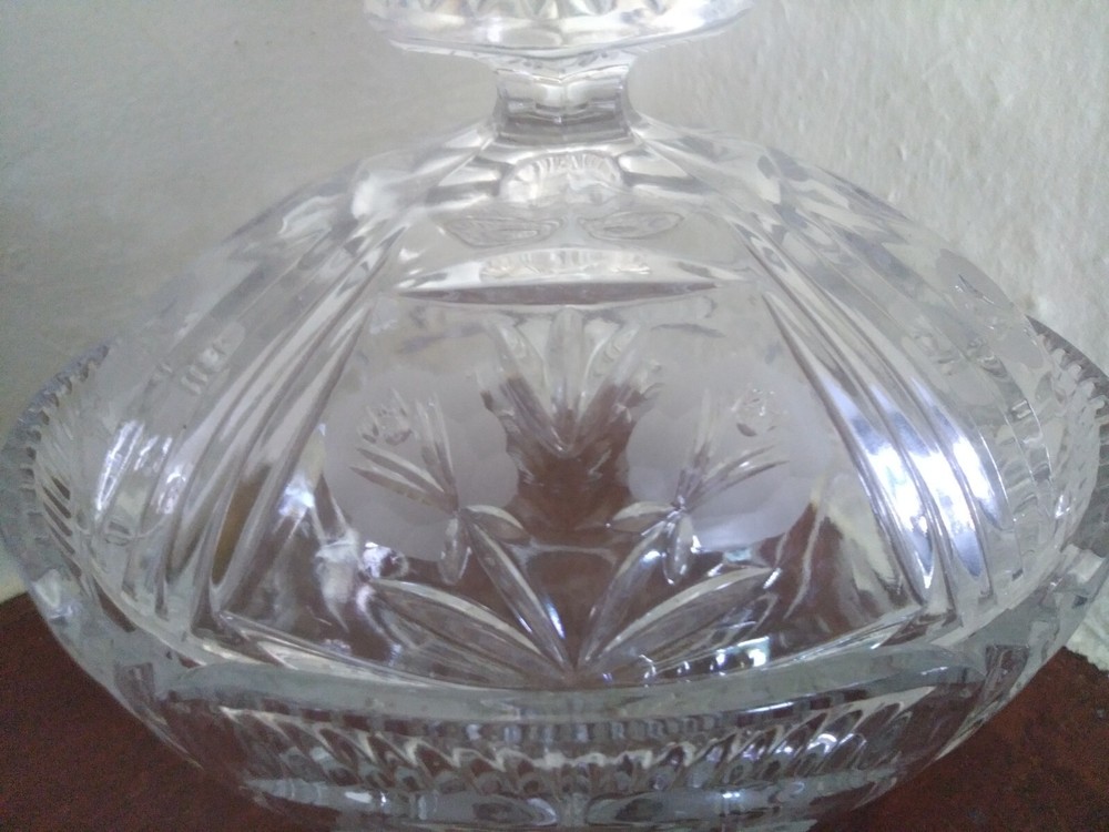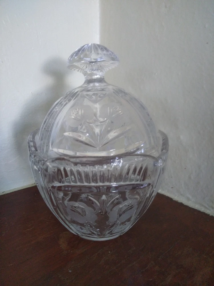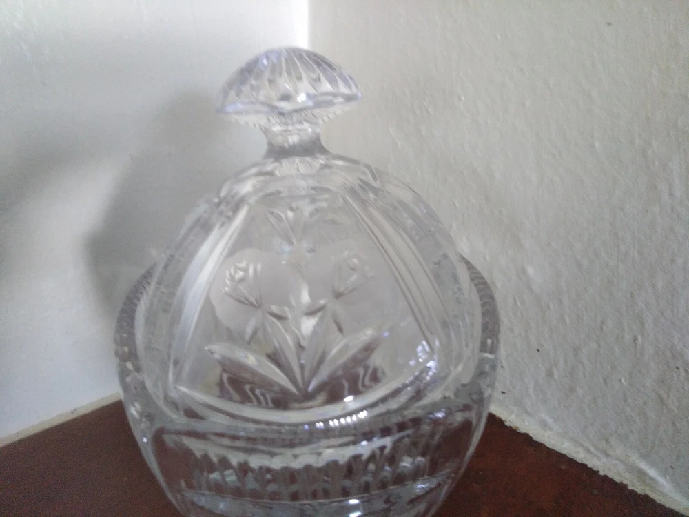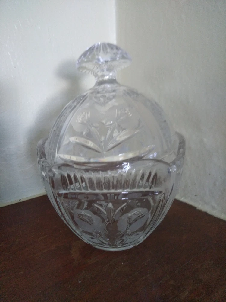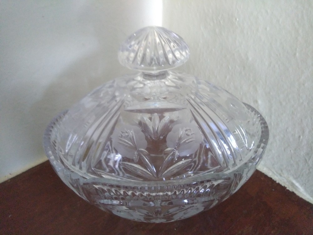 Vintage Crystal Glass Candy dish With Lid Floral Design.
