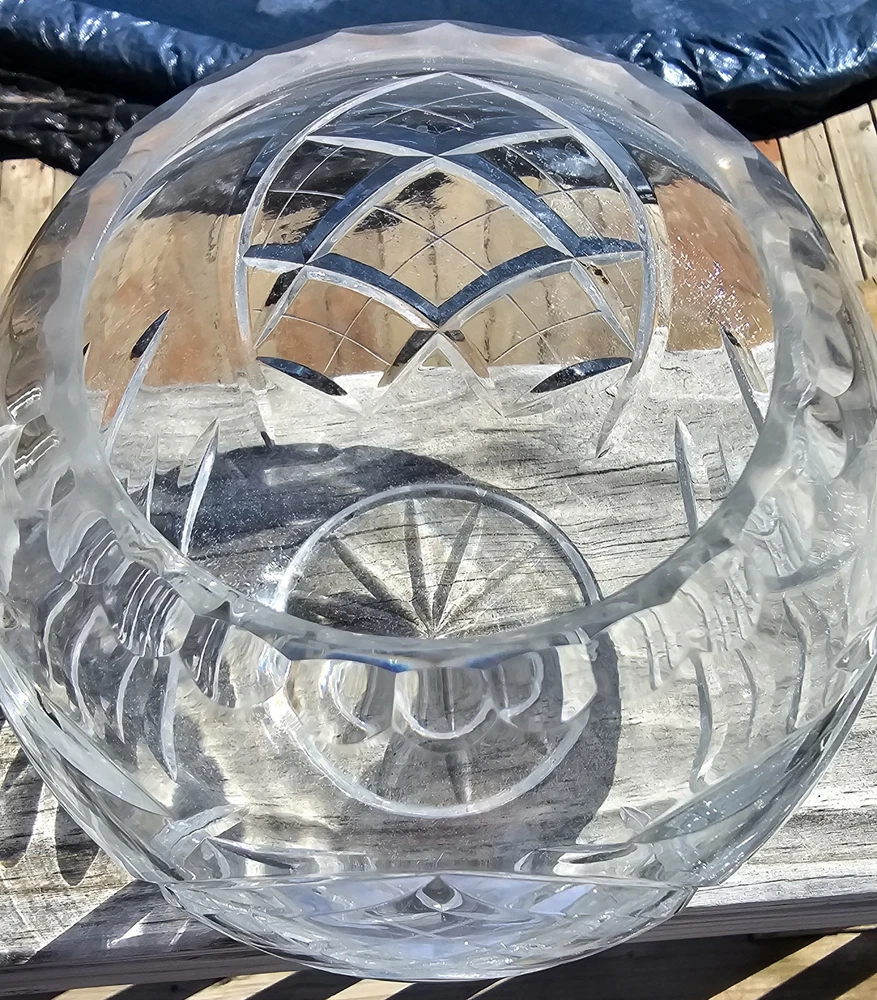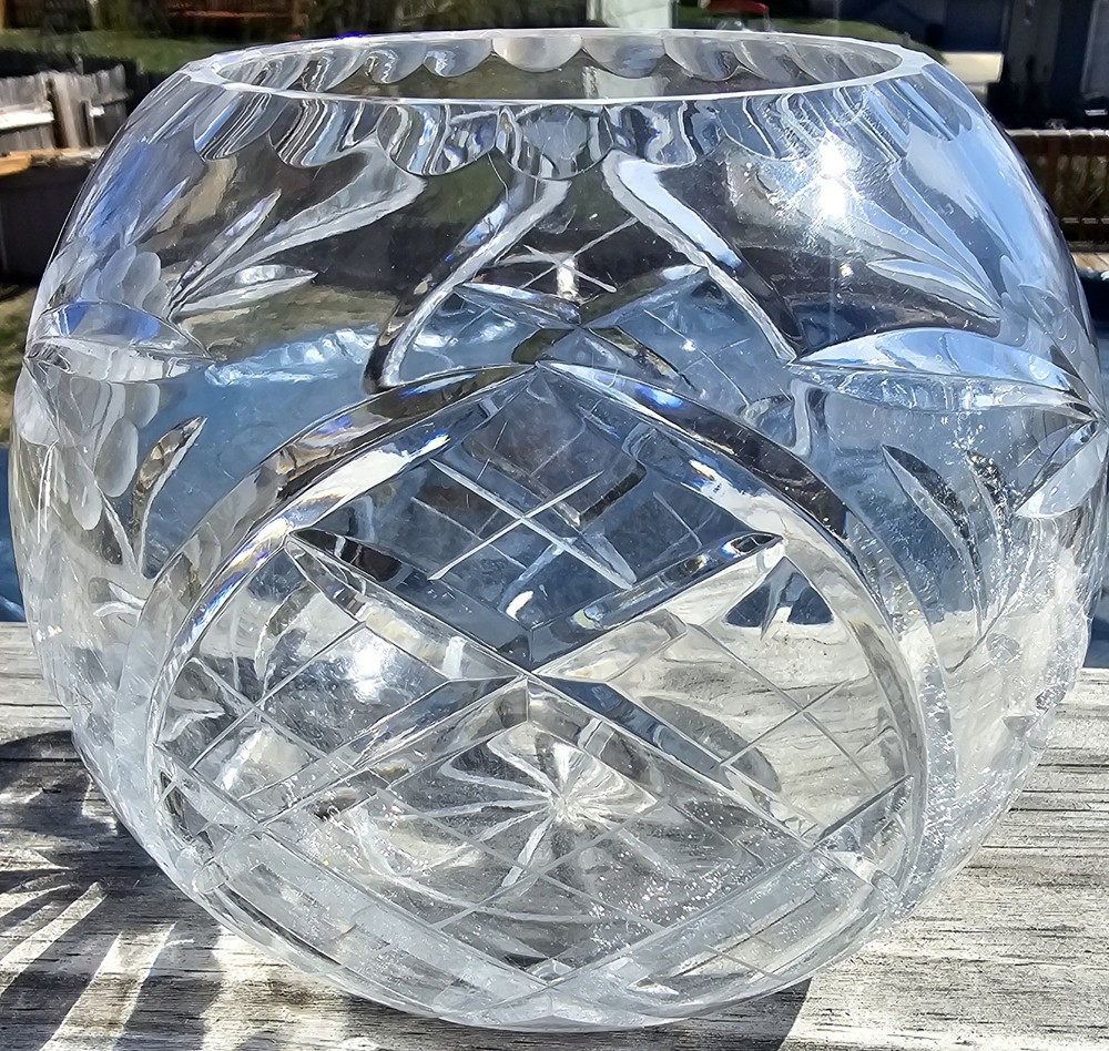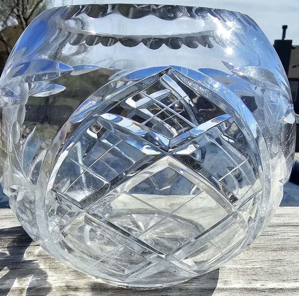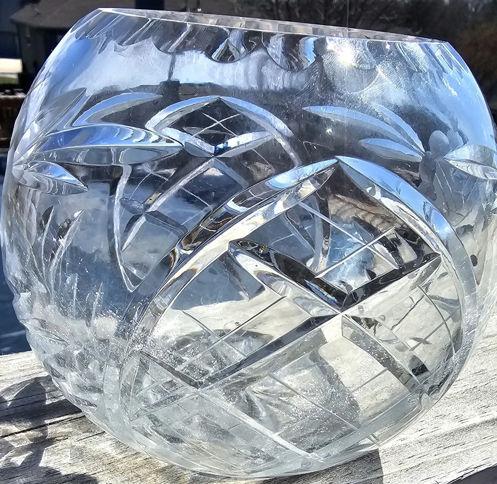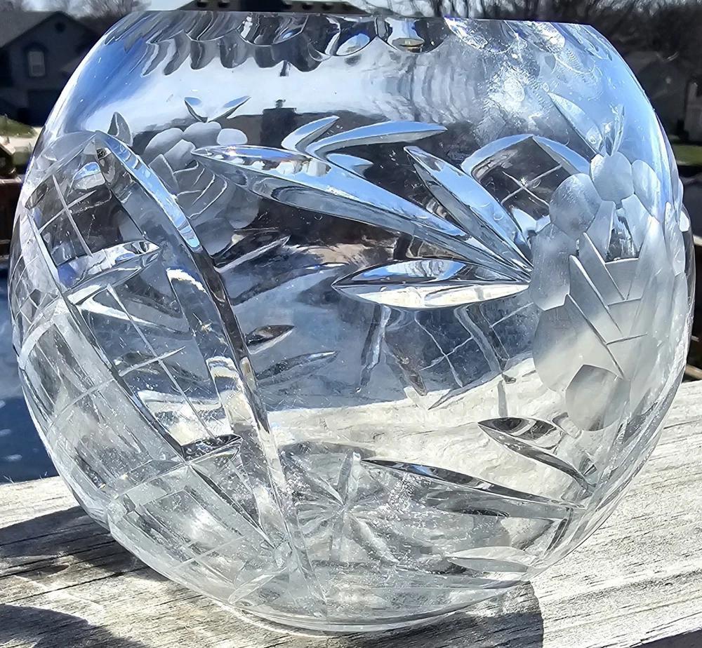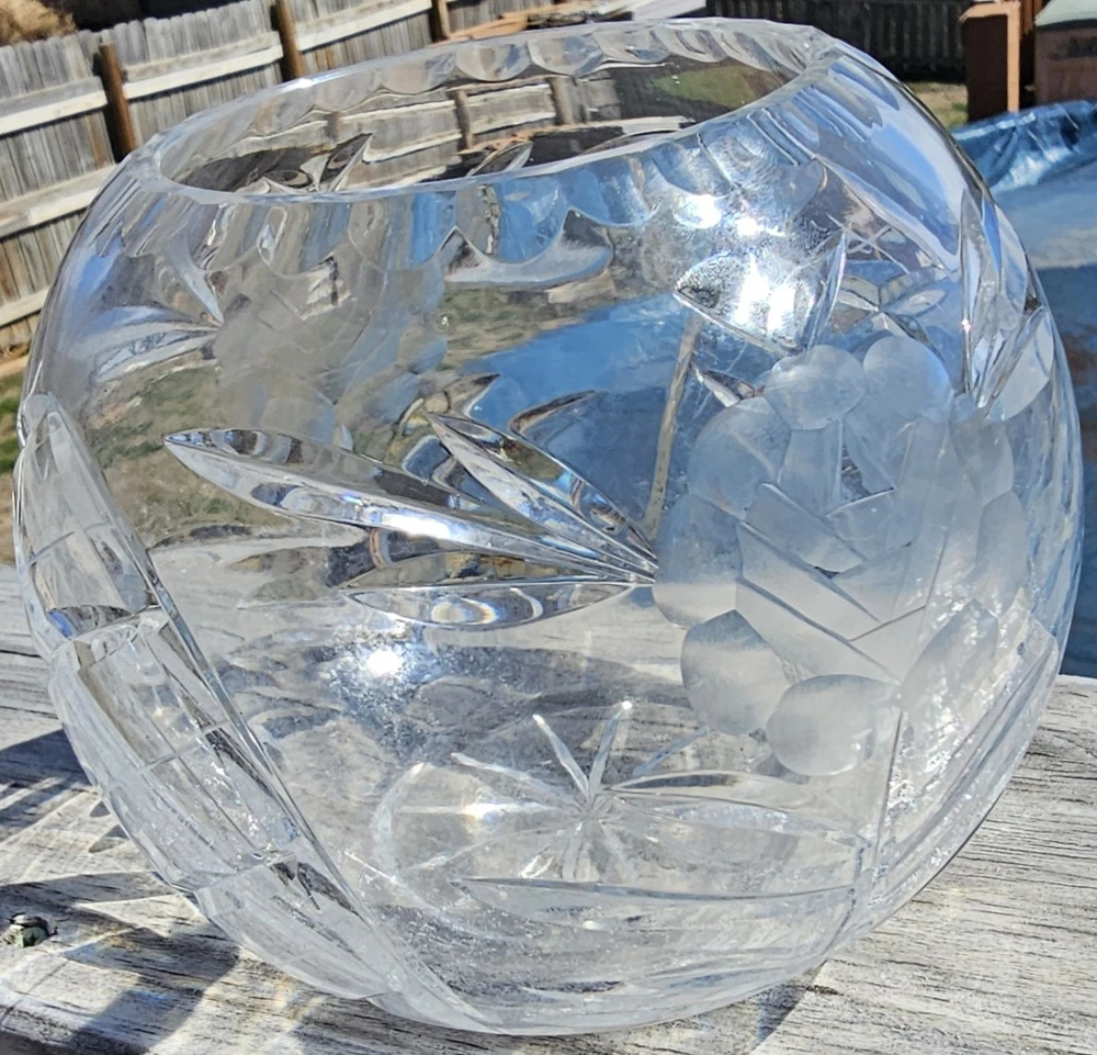Vintage Lead Crystal Floral Round Bowl Vase Cut & Etched 8.5" Diameter, This beautiful round crystal vase is perfect for displaying your favorite flowers or as a standalone decorative piece. The intricate etched design featuring a floral design adds a touch of elegance and romance to any space. Measuring 8.5 inches in diameter and 7 inches in height, this medium-sized vase is made of high-quality crystal and is easy to clean with just warm water. Its traditional style and classic clear color make it a versatile addition to any home decor. The topped scallop edge is in perfect condition. The inside of this bowl looks to have some inner "crazing" or scratches about halfway down the bowl to the bottom, please see pictures for details!! ***DISCLAIMER: *PLEASE VIEW ALL PHOTOS & READ FULL DESCRIPTION *I inspect each item myself & try to list any & all defects that I see. *All measurements are approximate. *True color may vary from screen to screen & light to light. *Please feel free to ask any questions before bidding. *Items come from a Smoke-Free home. *Shipping available within the Continental United States. ***Possible discounted shipping available if multiple items are purchased within a reasonable time of each other*** *If you are not satisfied with any aspect of your purchase, Please contact me before leaving negative or neutral feedback. I want you to be happy with your purchase!! *THANKS FOR LOOKING!!!