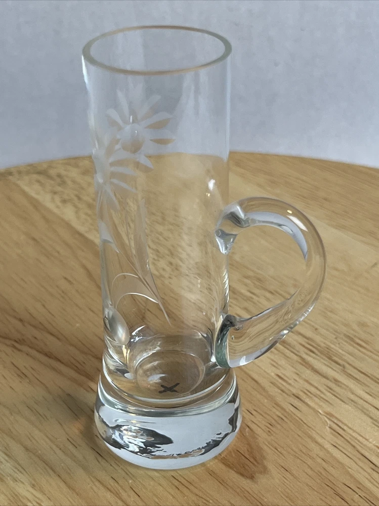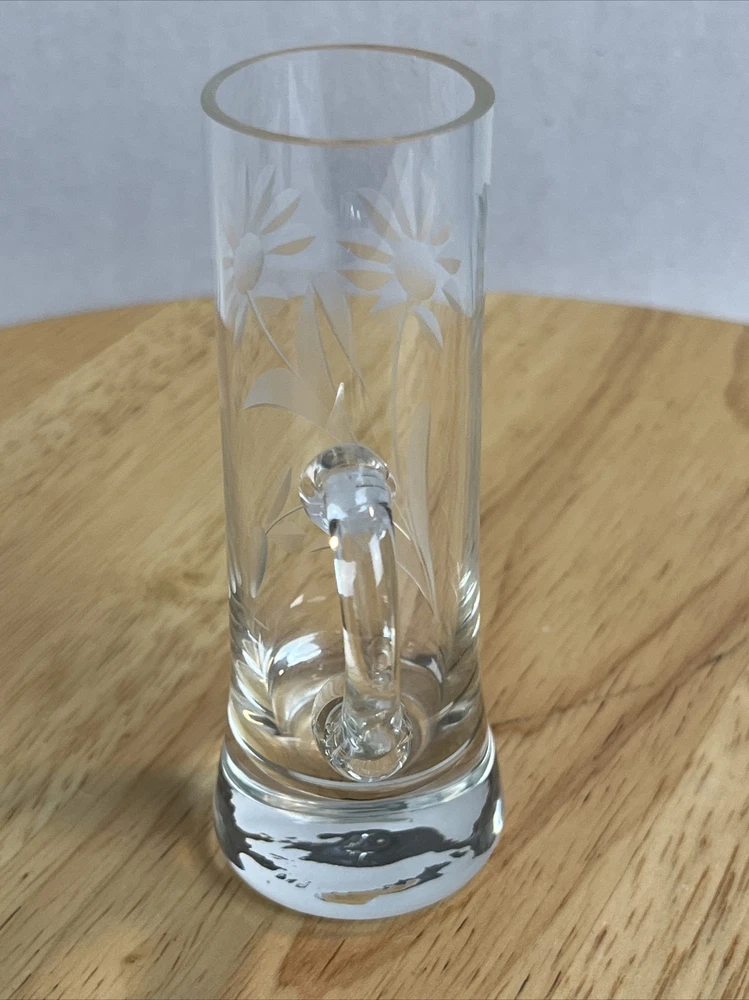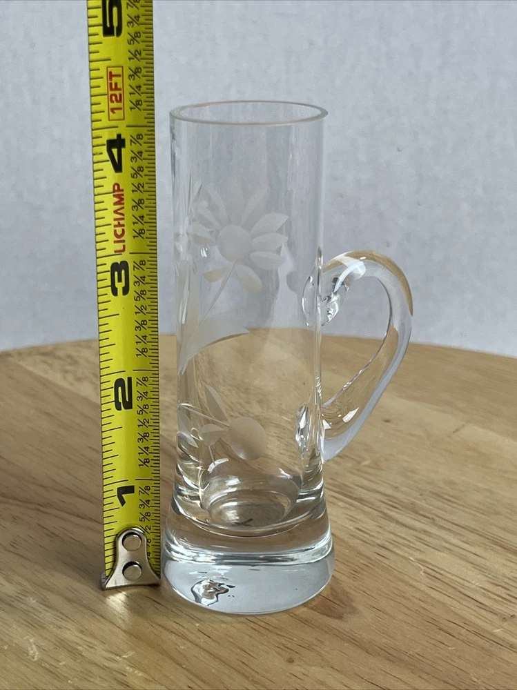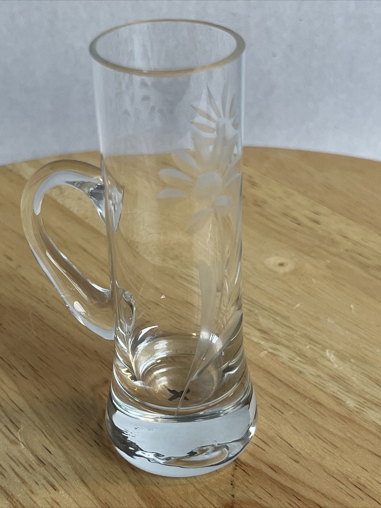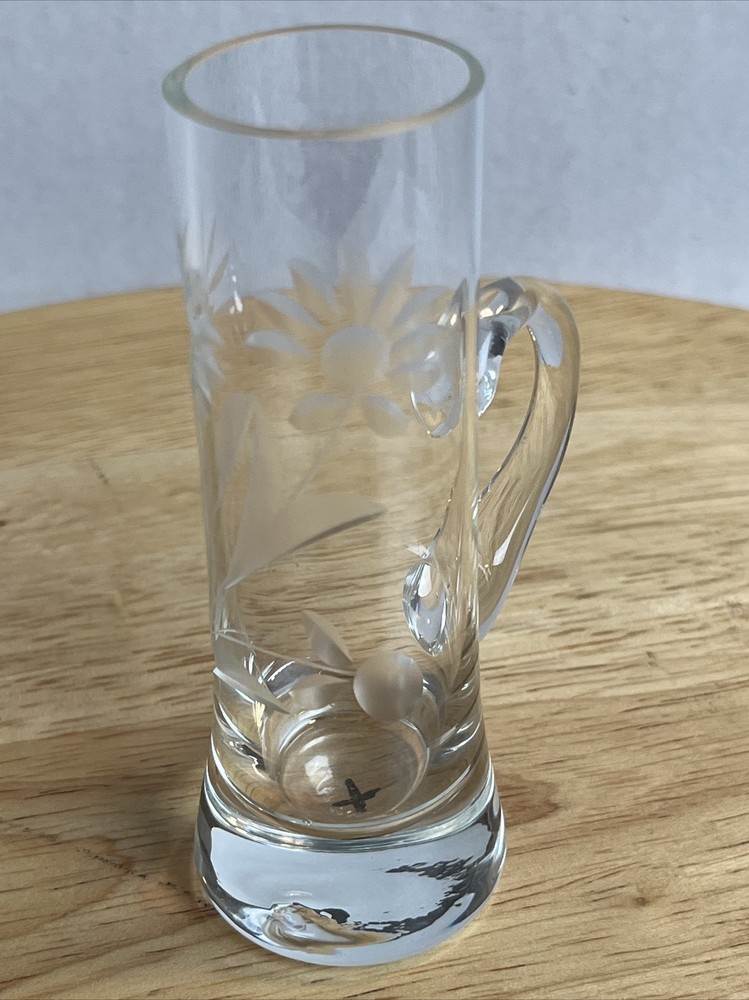 Vintage Floral Etched Shot Cordial Glass w/ Handle Bar Decor