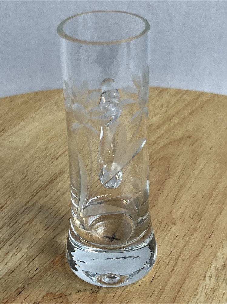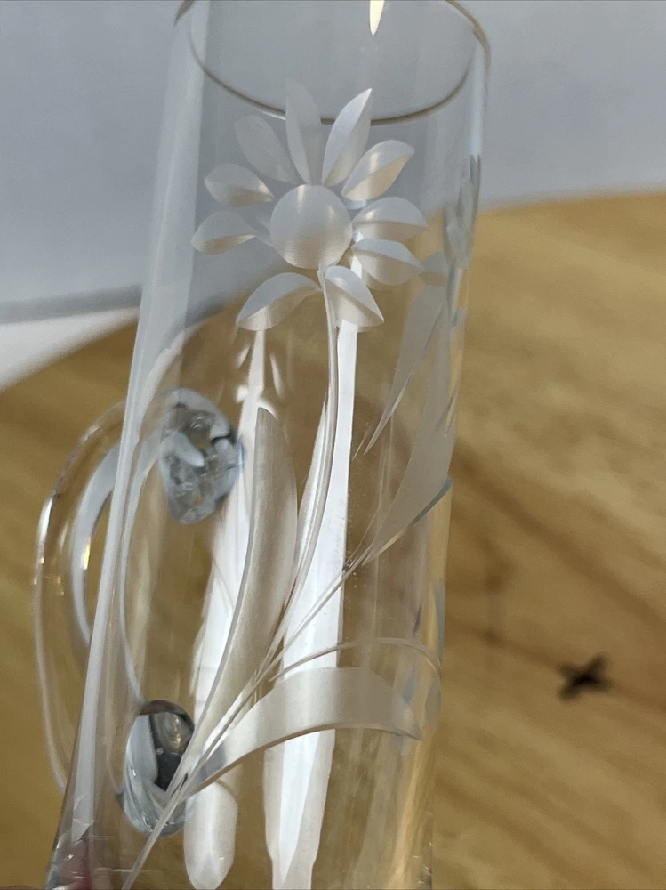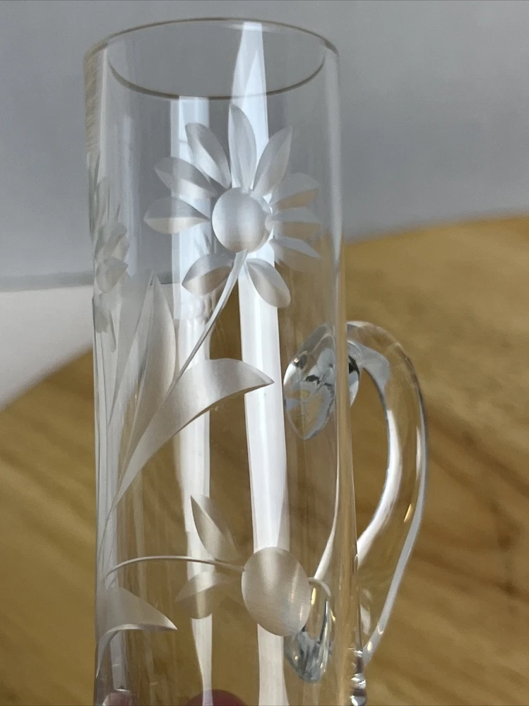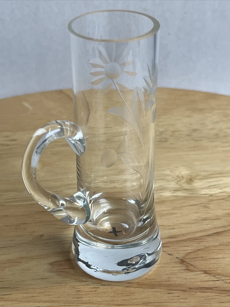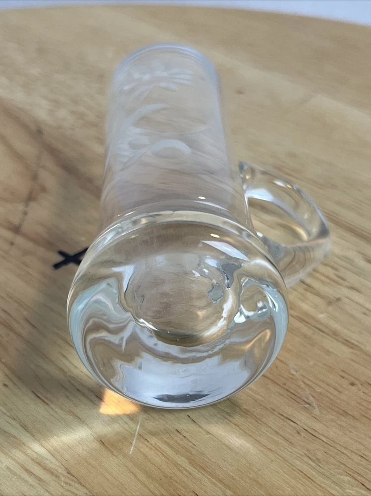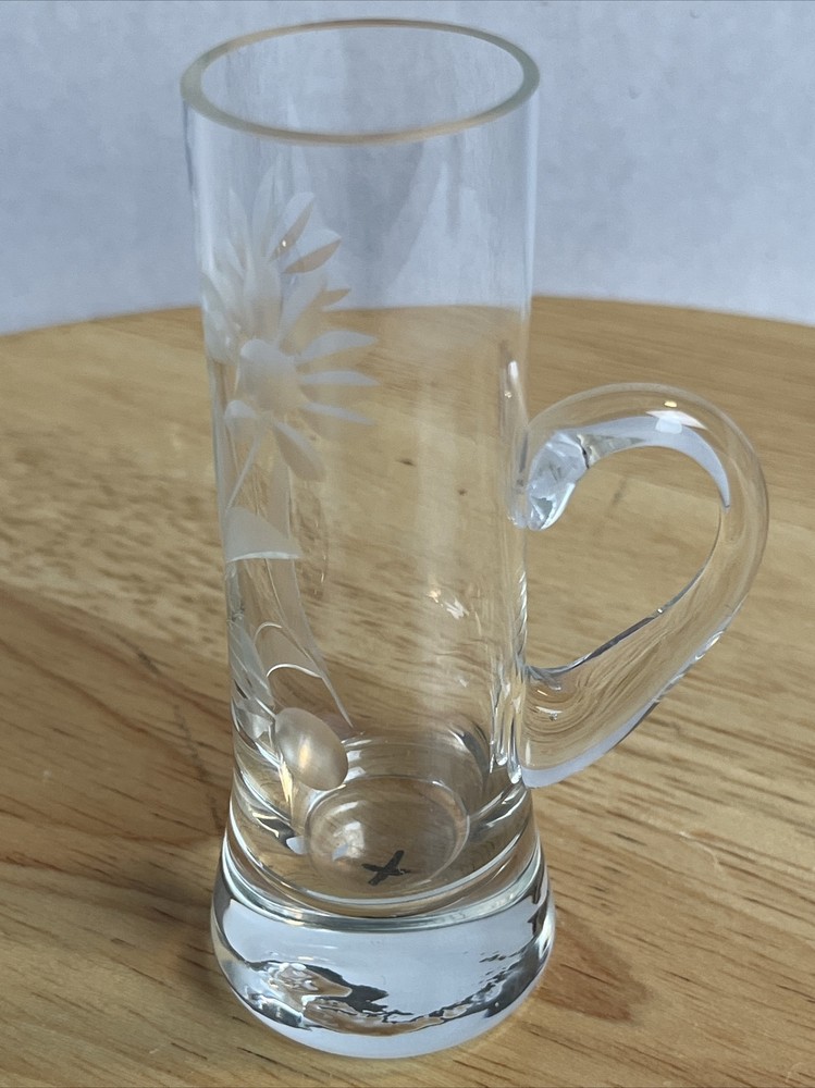 Vintage Floral Etched Shot Cordial Glass w/ Handle Bar Decor