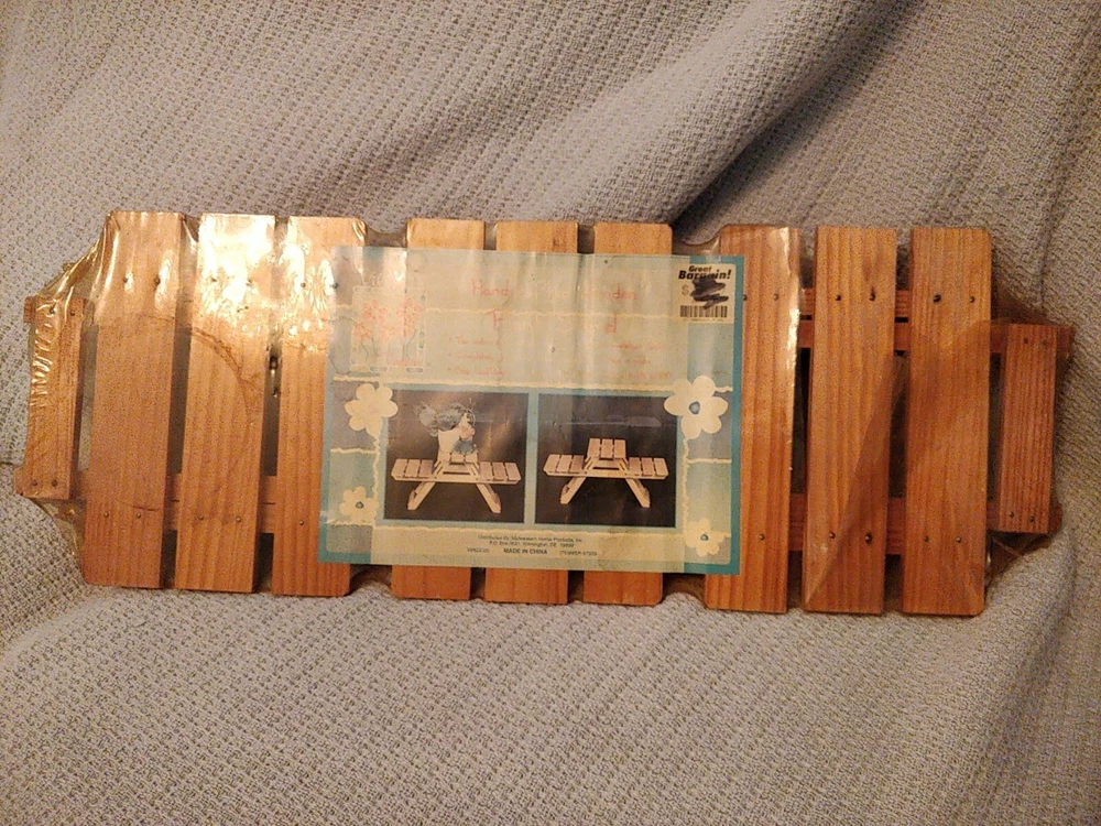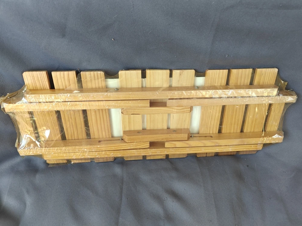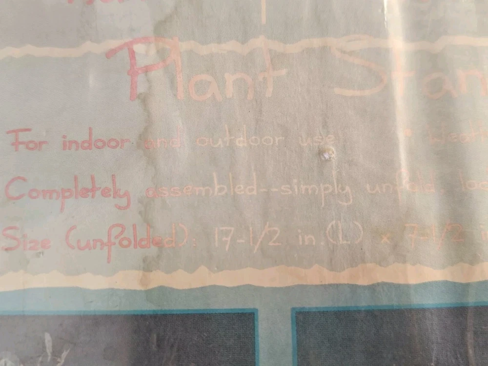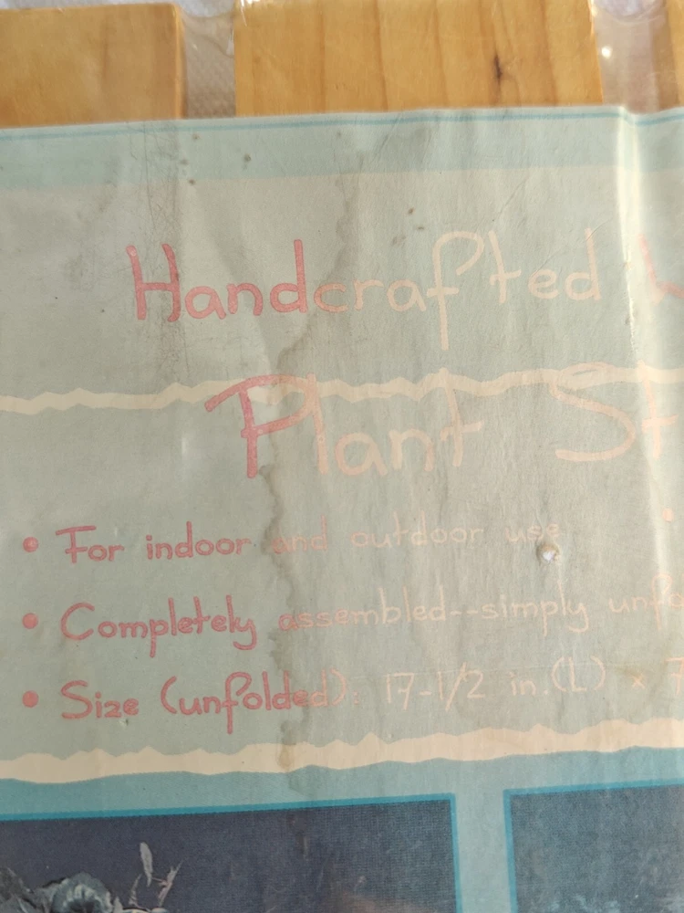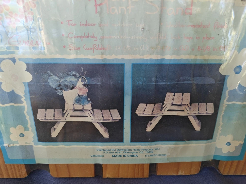 Create a charming display for your plants with this 2 Tier Folding Wood Plant Stand. Crafted from smooth pine wood, this traditional style stand is designed to hold medium-sized flower pots and comes in a warm brown color. The rectangular shape of the stand measures 17 1/2 inches in length, 7 1/2 inches in width, and 8 1/8 inches in height, making it perfect for use on porches, balconies, lawns, or indoor spaces. The plant stand is weatherproof and suitable for both indoor and outdoor use. It features a unique step design that adds visual interest to your flower arrangements. The stand is easy to care for and requires minimal maintenance. Use it to showcase your favorite plants and add a touch of natural beauty to your home or garden. Completely assembled simply unfold and lock legs in place weather resistant finish for indoor and outdoor use never used in original plastic wrapper rapper is torn on one side vintage piece great to display your plants and flowers