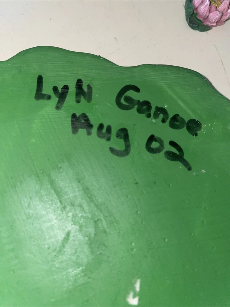 This vintage stoneware tic tac toe game is a unique piece of folk art that will add a touch of charm to any collection. Handmade by Lyn Ganoe in 2002, this statue features miniature frogs and flowers with vibrant colors that make it a decorative piece perfect for any gaming enthusiast. The game is contemporary, produced in the United States, and made of clay and stone materials. The sculpture is 6.5 inches long and 6 inches wide, with a period of production from 2000-2009. It is signed by the artist and features a handmade design that showcases the culture of folk art. This item is perfect for collectors who appreciate unique and vibrant pieces that add a touch of history to their collection. It would make an interesting gift especially for those who love games.
