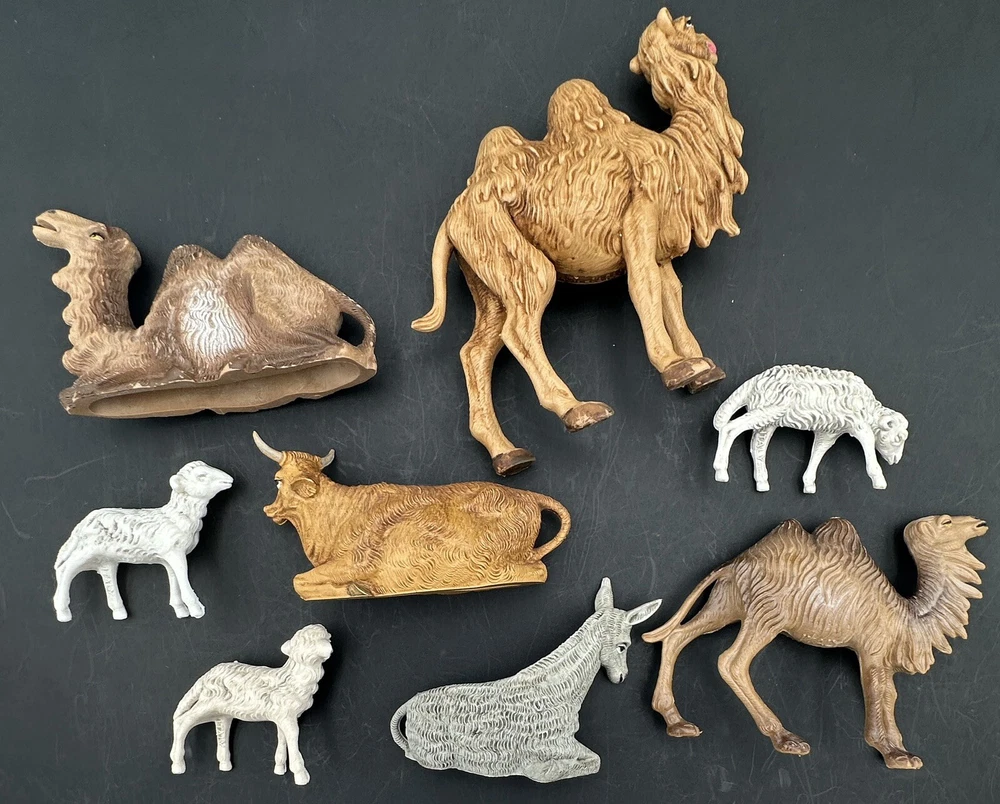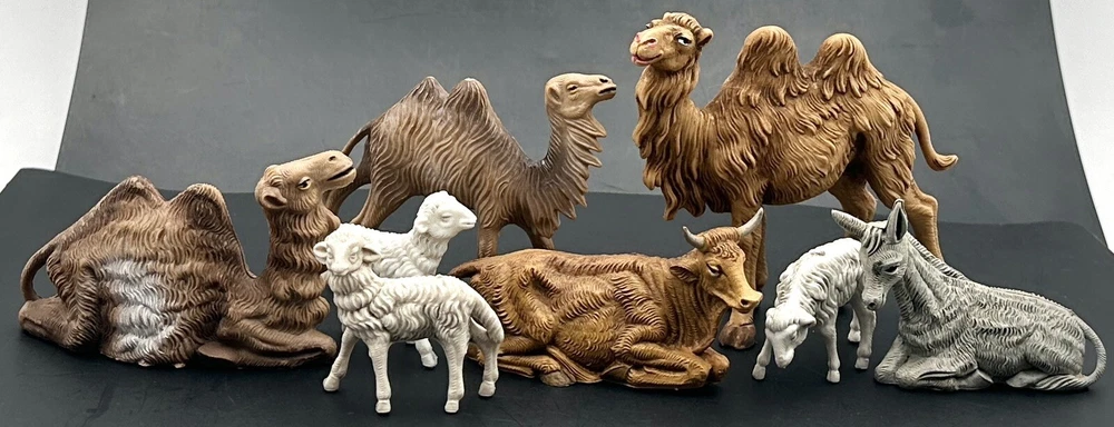 Lot includes all animals shown. Tallest standing camel measures approximately 4 inches tall and 4 3/8 inches long. White sheep measure 2 inches tall. All figures are marked ITALY, but marks are different on some pieces. Surface wear as seen in pictures. Does not include any original packaging. Thanks for looking and happy buying! Follow this link to see all our NATIVITY items! Follow this link to see all our RELIGION & SPIRITUALITY items! Follow this link to see all our CHRISTMAS items!