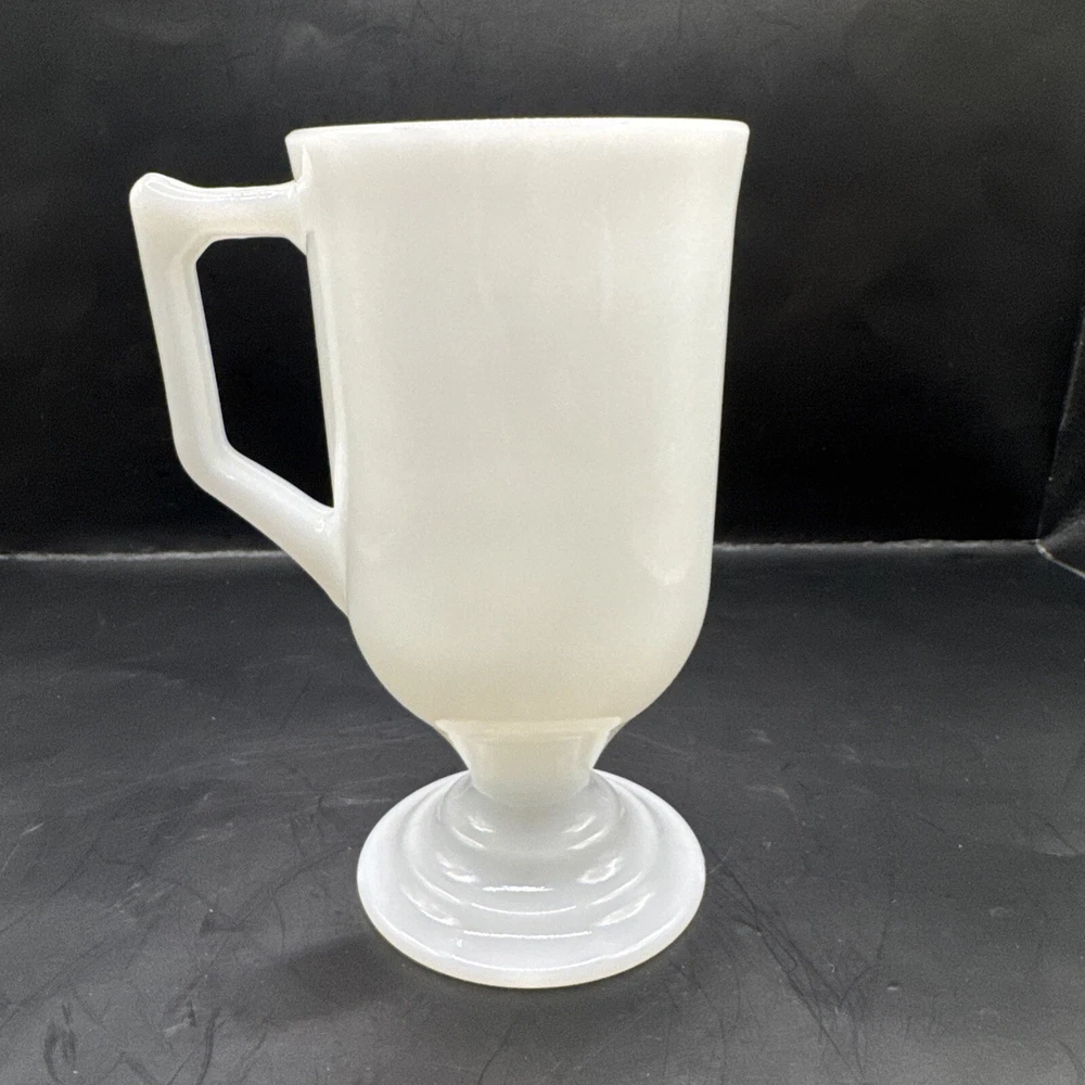 Vintage Footed Pedestal MILK GLASS Solid White Tall CUP Mug Handle Stem 8oz. Condition is Used. Shipped with USPS Ground Advantage.