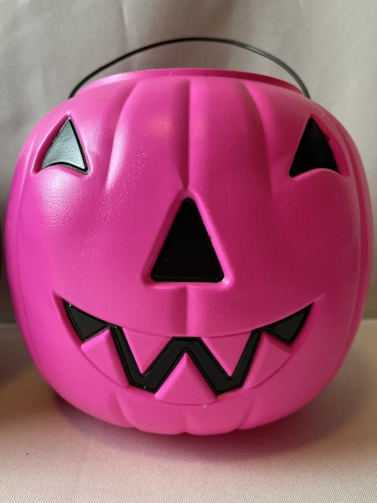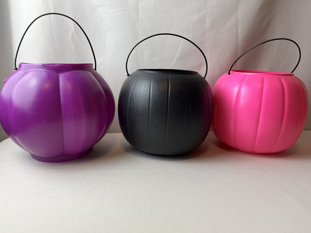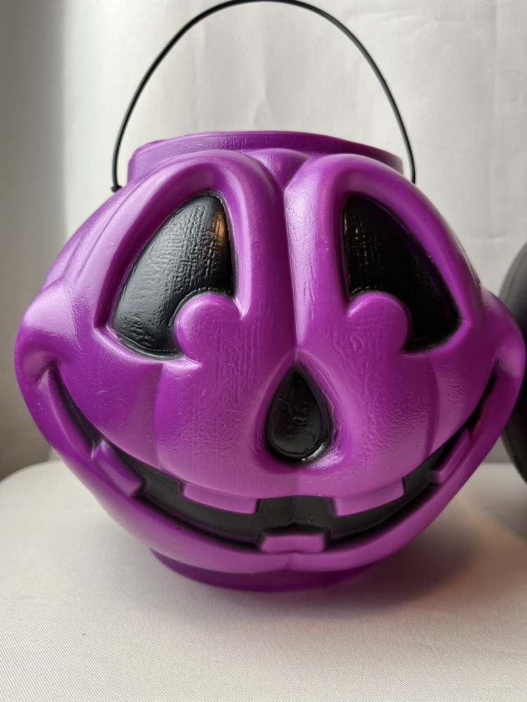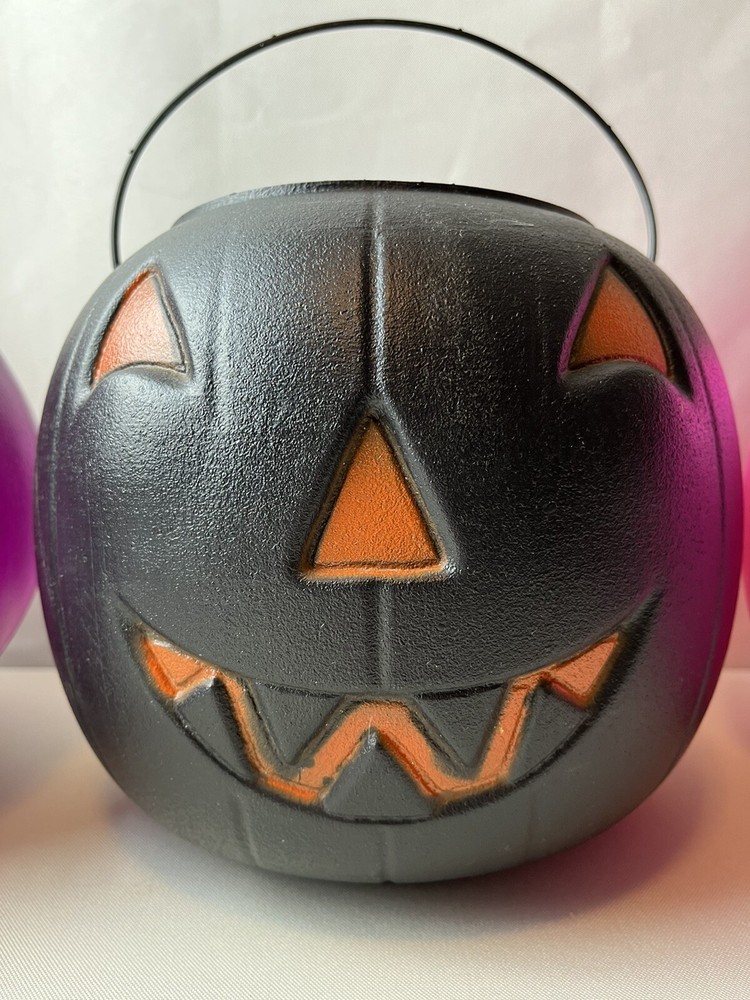 Vintage General Foam Halloween Pumpkin Buckets in Purple Black and Pink Blow Mold Style