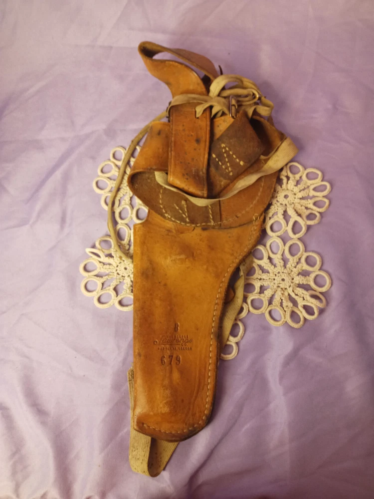 This vintage George Lawrence holster is a must-have for any cowboy or Western enthusiast. With its classic design and durable construction. Made by a trusted brand in the industry, this holster is sure to impress. Whether you're hunting in the field or just looking for a stylish accessory to complete your Western outfit, this holster is the perfect choice. Its unique design and high-quality materials make it a standout piece that is sure to turn heads. So why wait? Add this vintage George Lawrence holster to your collection today!