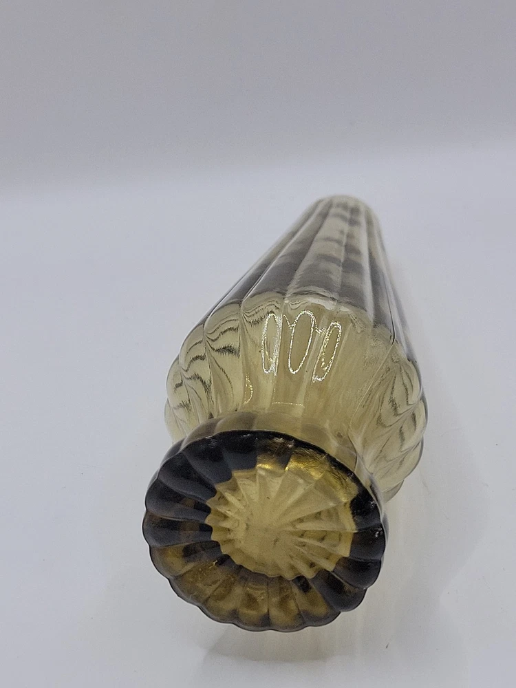 Elevate your home decor with this stunning Vintage Glass Amber Swung 6 Pedal Vase. The vase features an epic column design and measures 6 inches in height, making it a perfect mini vase for any room. The amber color and 6-petal pattern add a touch of artistry and abstract beauty to your space, while the swung production style ensures a unique and eye-catching piece. This vase is perfect for displaying your favorite flowers or as a standalone statement piece.