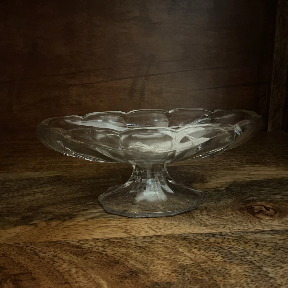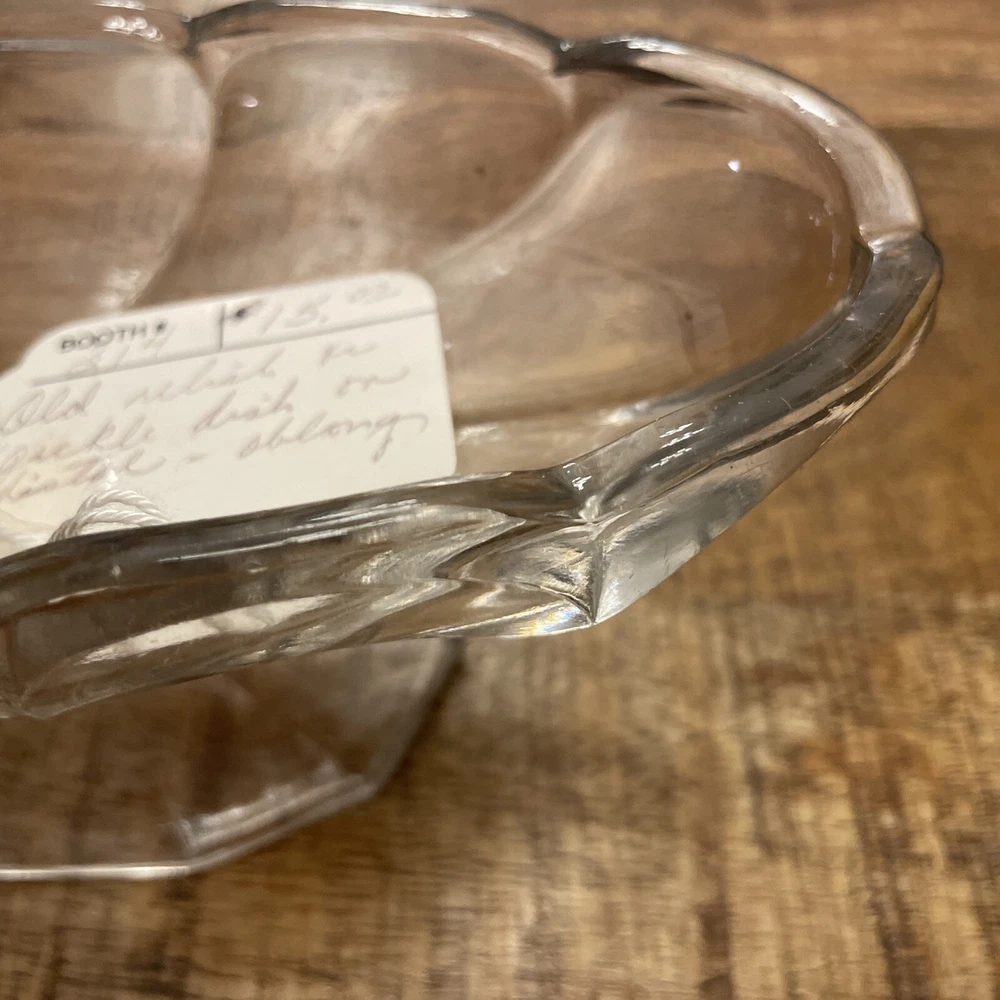 Vintage Glass Oval Relish/Pickle Dish On Pedestal