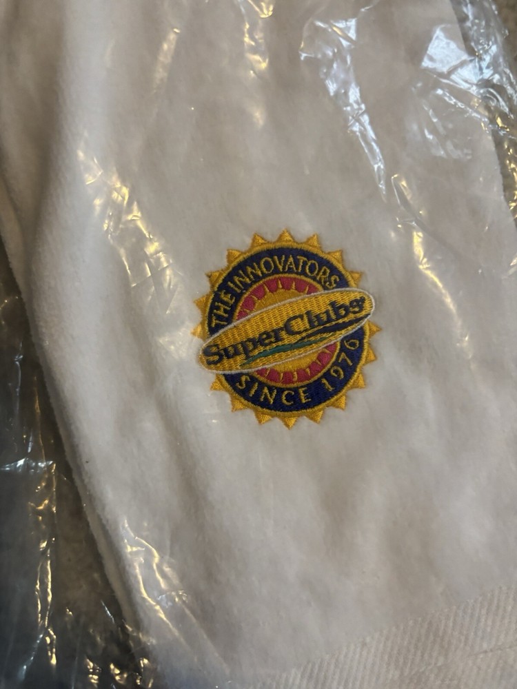 set of 2 new old stock vintage golf towels with brass clips - one is navy blue one is white Smoke free home Any questions please email me before purchasing Please read entire description and examine all pictures before purchasing
