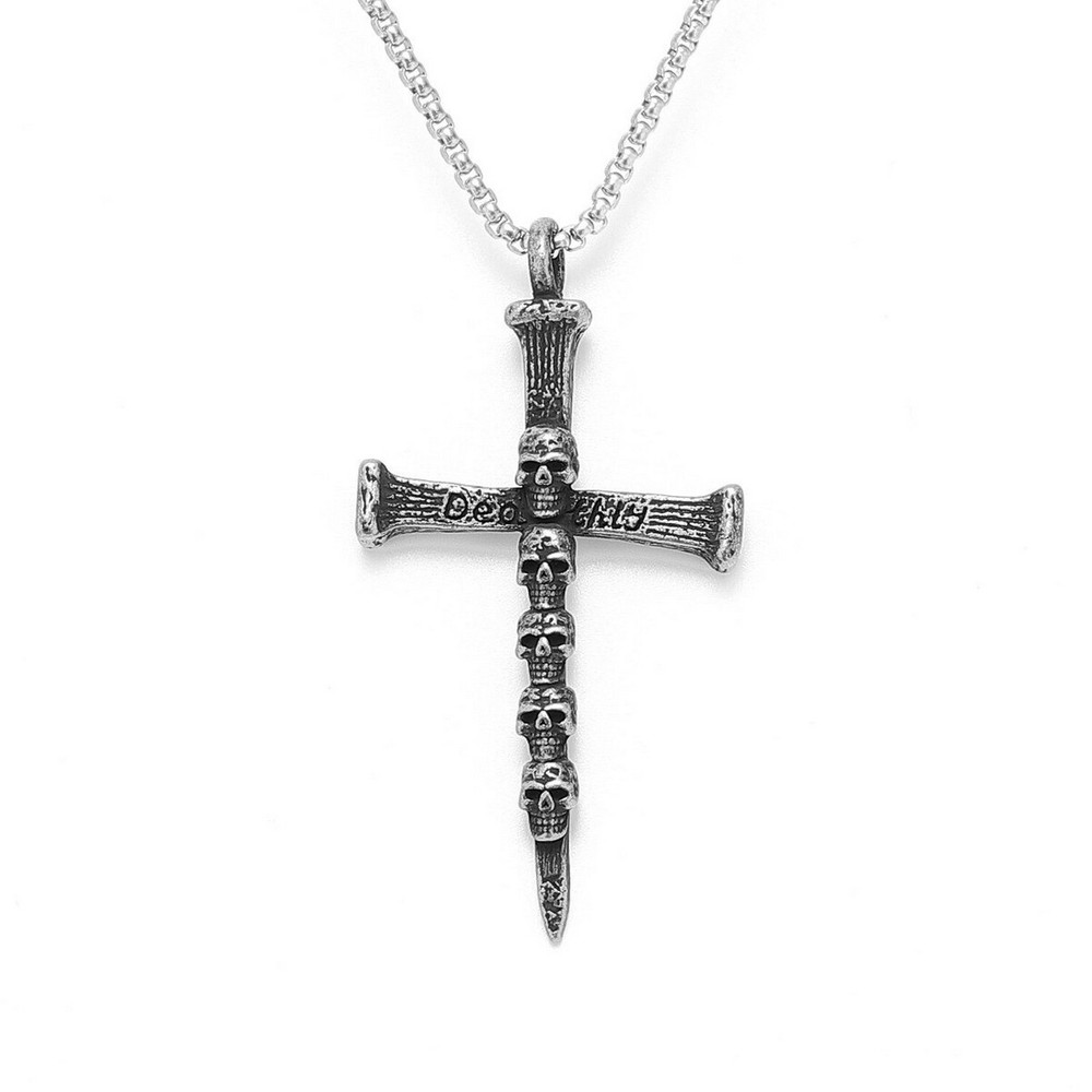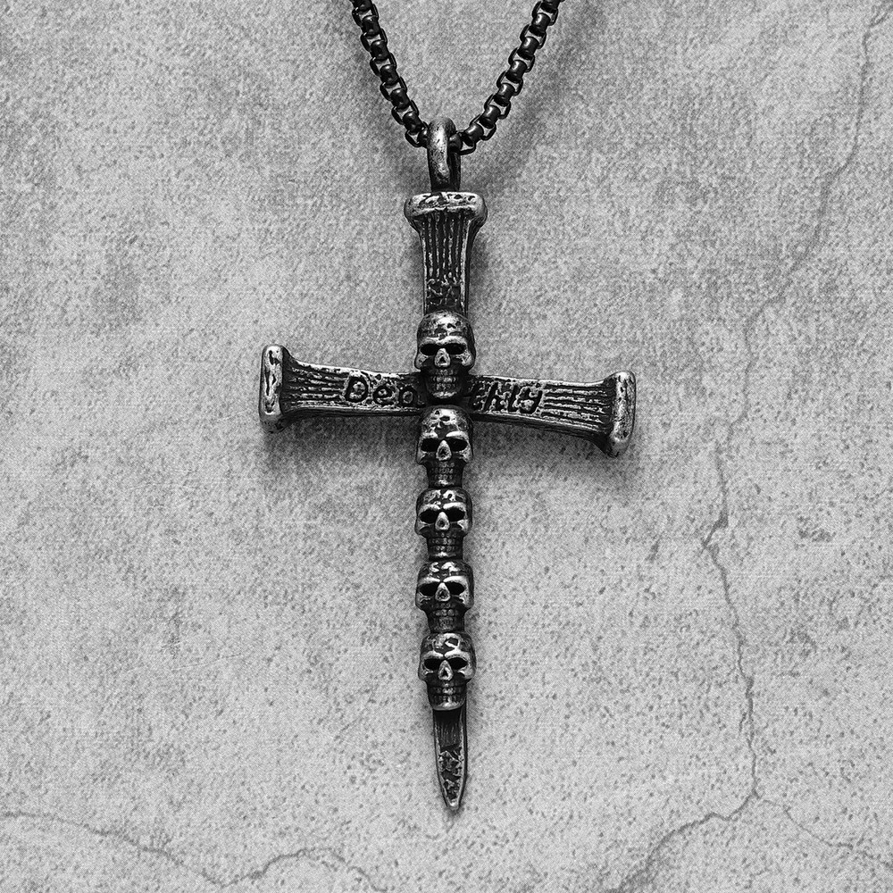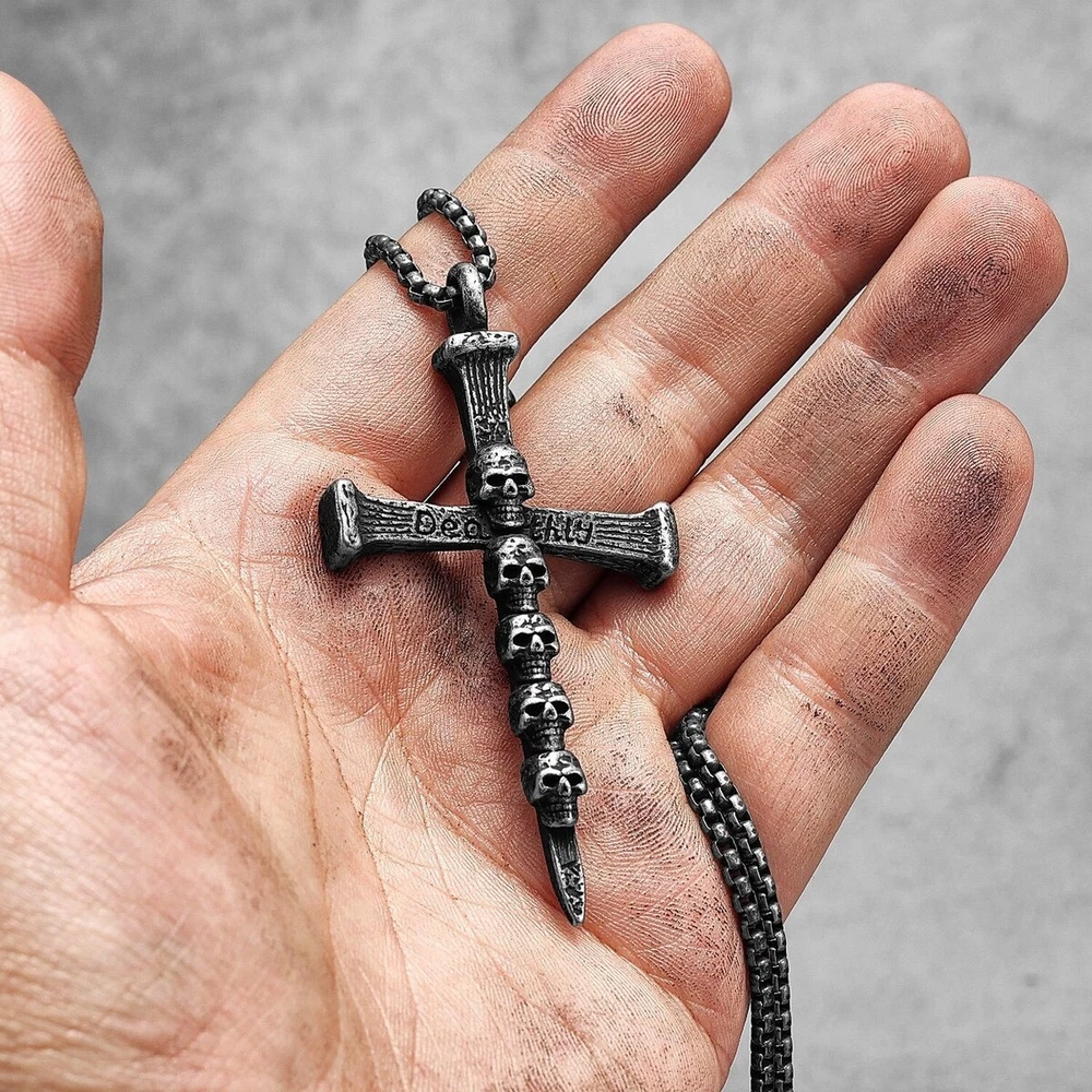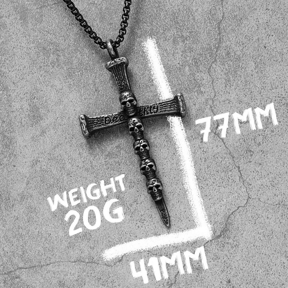 Vintage Gothic 5 Skull Cross Stainless Steel Halloween Unisex Necklace Chain Pendant