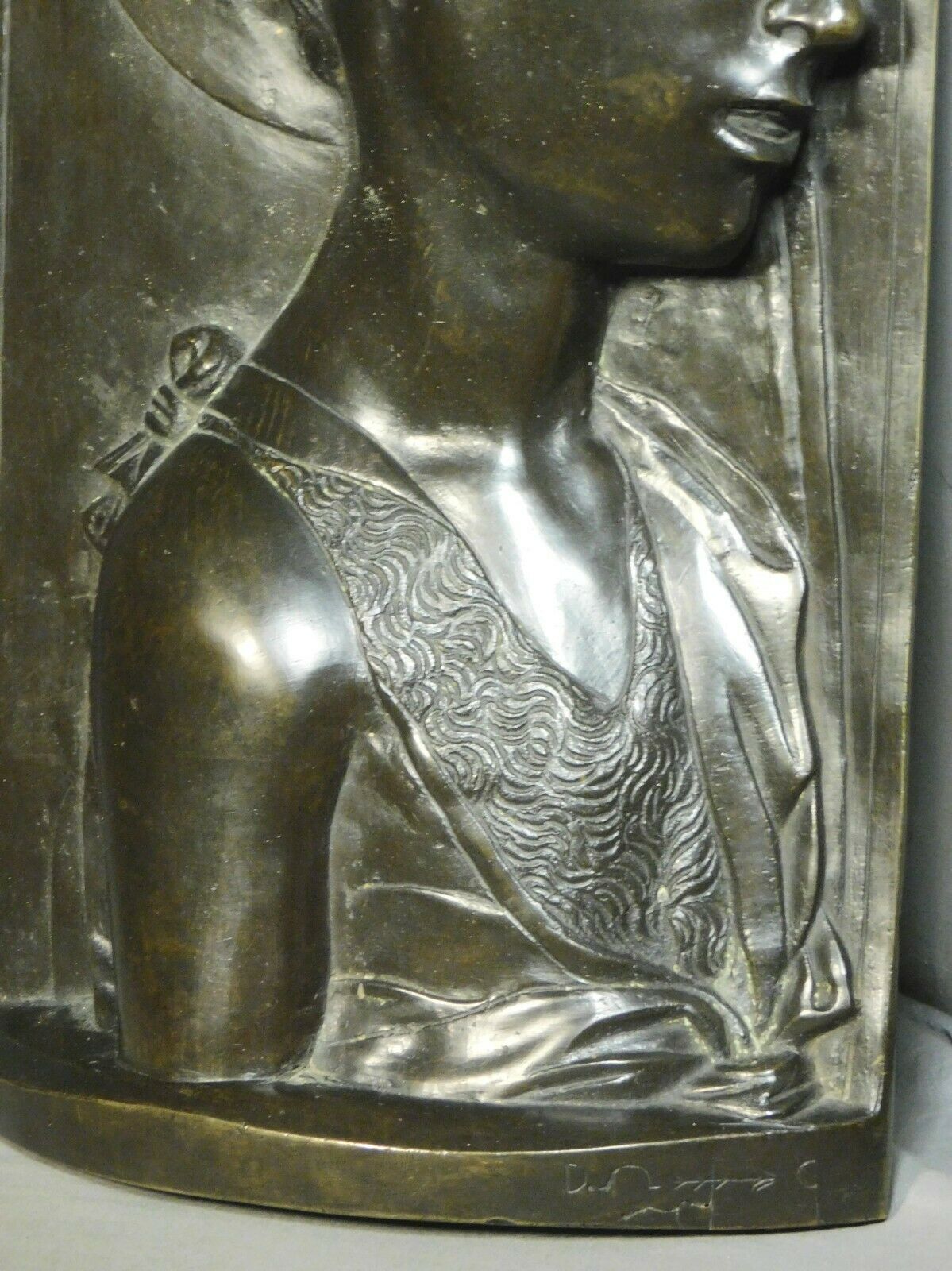 This sensitive lost-wax, cast bronze relief after the young Desiderio da Settignano (Florence, c.1430-1468) dates from the early 1900's and was likely crafted in Italy as a souvenir of the grand tour. Measuring 19 1/8" tall x 9 1/8" wide x 2 1/2" deep, it depicts the young John the Baptist as a young boy in profile wearing his rough fur garment. The deeply cut details and warm patina make this a particularly pleasing replica of Desiderio's masterpiece. WE ARE ALWAYS HAPPY TO SHIP WORLDWIDE IF ALLOWED BY USPS. Please contact for international shipping cost quote. Stated U.S. shipping charges are for FEDEX GROUND in the contiguous 48 states. Higher rates may apply for AK and HI or USPS shipping. Please e-mail me if you have any questions. PAYMENT POLICY: Unless arrangements are made prior to bidding, payment is expected within 7 days after the end of the auction or the item will be re-listed. Visa/MasterCard payments accepted through PayPal. Indiana residents must add 7% sales tax. On all INTERNATIONAL SHIPMENTS merchandise will be declared as such (not gifts or commercial samples) and value stated as the actual sale price. LARRY