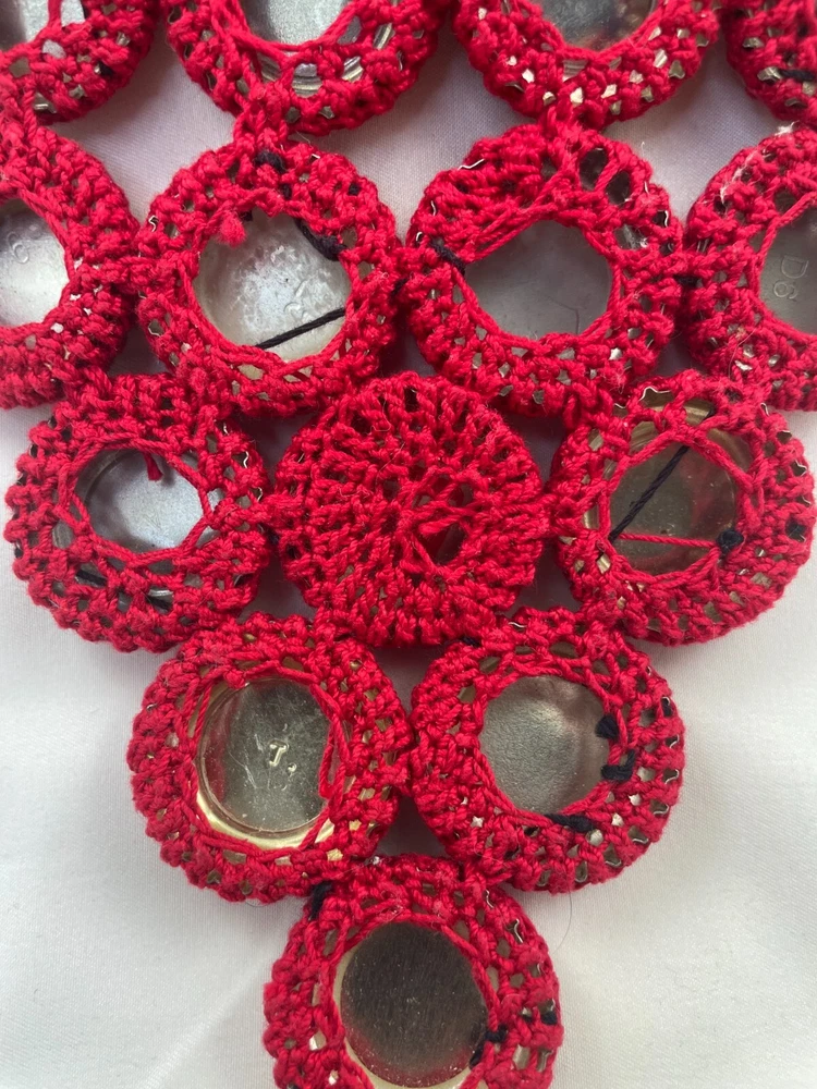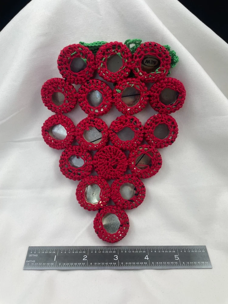 7" H x 5.5" W Hand Made Crochet Yarn and Bottle Caps Vintage Grape Hot Trivet Hot Pad Kitchen Decor For Inventory - BC-02