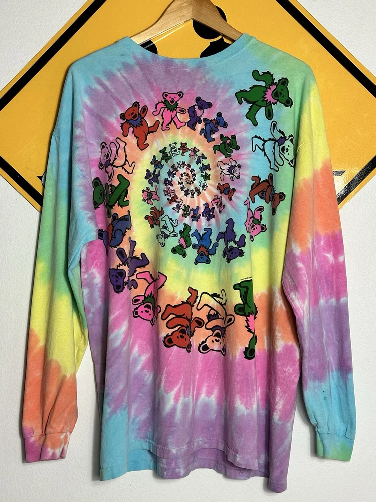 Vintage 1995 Liquid Blue Grateful Dead Spiral Bears Tie Dye Long Sleeve Good Shape A Few Minor Spots (As Shown) Original ‘95 Liquid Blue Tag Has Been Cut Out Not A Reprint Size: XL Measurements Pit To Pit - 23” Length - 30” FREE SHIPPING