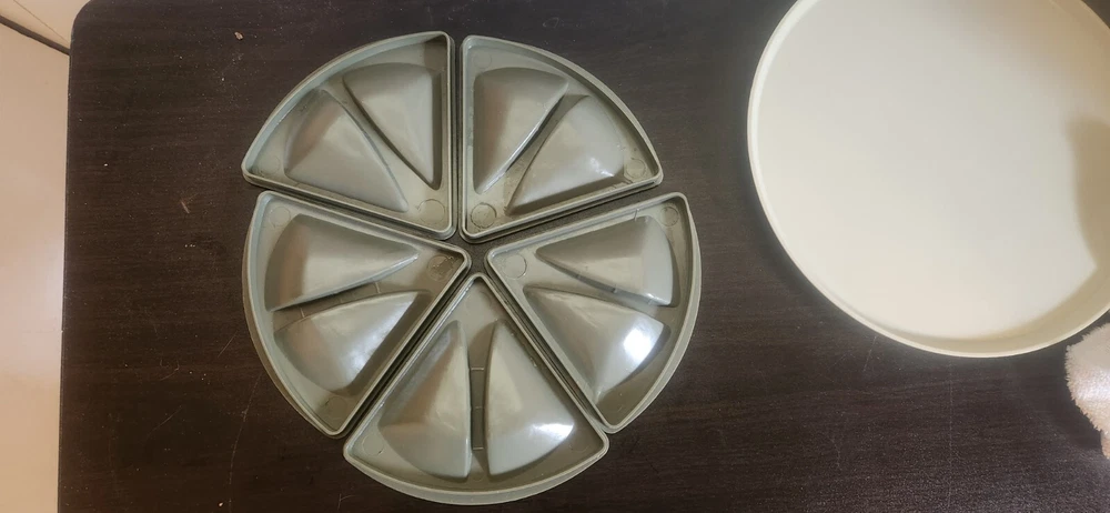 Pre-owned Wear consistent with use Also a piece of plastic broken off one container Other containers have cracks Functions as it is suppose to See pictures If you need more information ask before buying