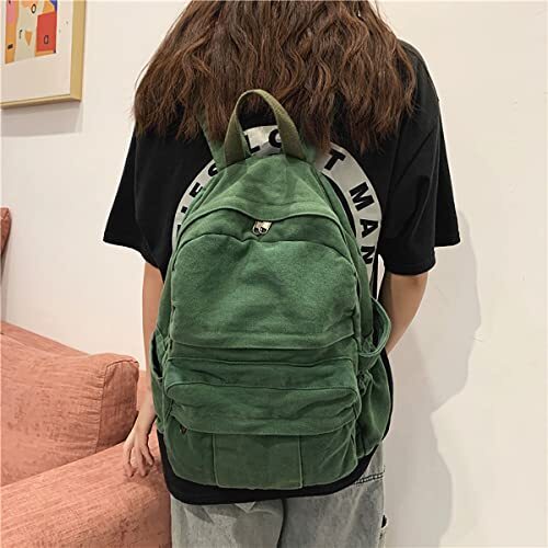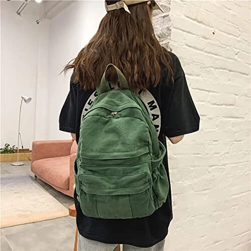 This stylish vintage green canvas backpack is both functional and charming! The high-density fabric feels durable, and the stitching is clean and reinforced for long-lasting use. It’s surprisingly roomy, fitting my laptop, books, and daily essentials easily. The retro design adds a cute aesthetic, perfect for school, work, or travel. The adjustable straps make it comfy to carry, and the seller delivered it fast with no issues. Absolutely love it—great quality for the price!