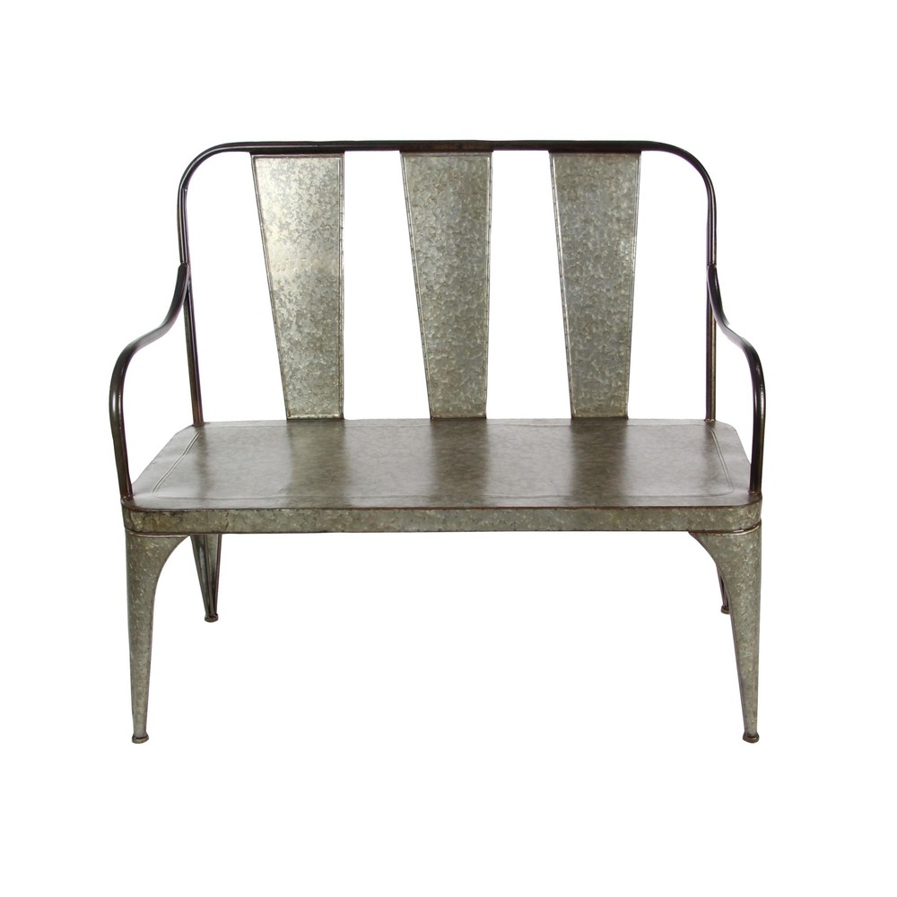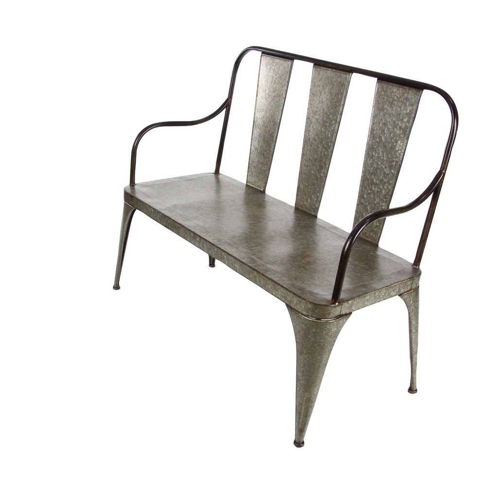45" x 40" Farmhouse metal bench, gray iron seat, stand and back rest with distressed aluminum finish, metallic black iron frame and arm rest, assembly requiredDimensions: 45x19x40Dimensions 2: seat 43x18Dimensions 3: seat height 18Theme: FarmhouseAssembly: YesFinish: Distressed, metallicMaterial: IronColor: Gray, blackAssembly Required Free Shipping Over $49.99* Details Grey Metal Iron Vintage Country Farmhouse Entry Porch Bench - 47 x 26 x 40 Product Description: 45" x 40" Farmhouse metal bench, gray iron seat, stand and back rest with distressed aluminum finish, metallic black iron frame and arm rest, assembly required Dimensions45x19x40 Dimensions 2seat 43x18 Dimensions 3seat height 18 ThemeFarmhouse AssemblyYes FinishDistressed, metallic MaterialIron ColorGray, black Assembly Required