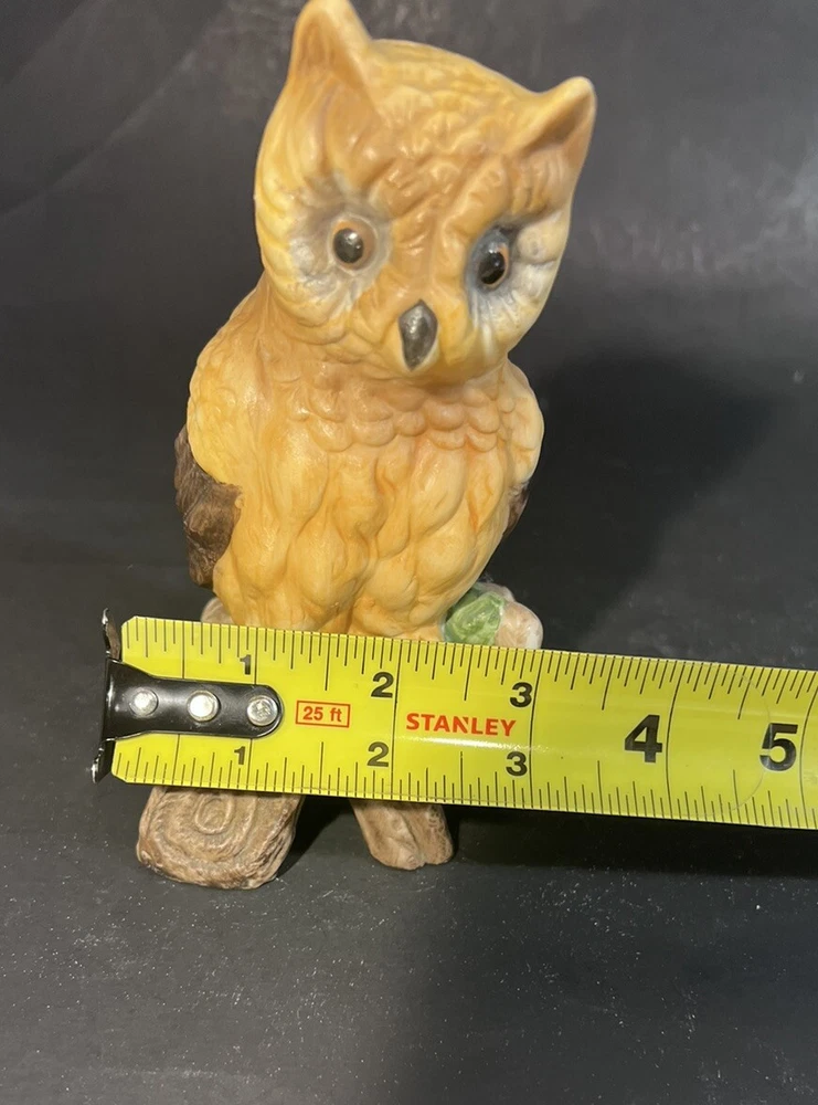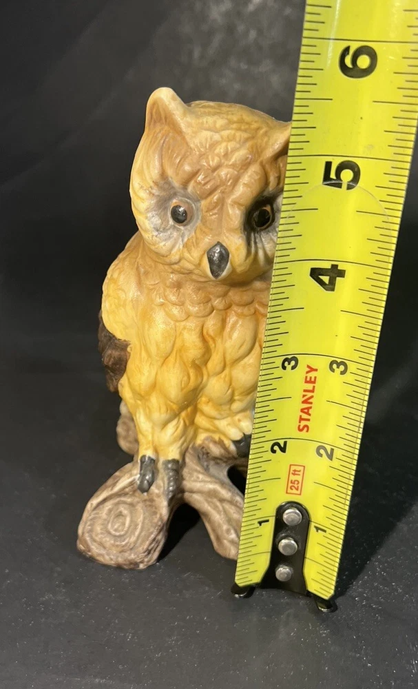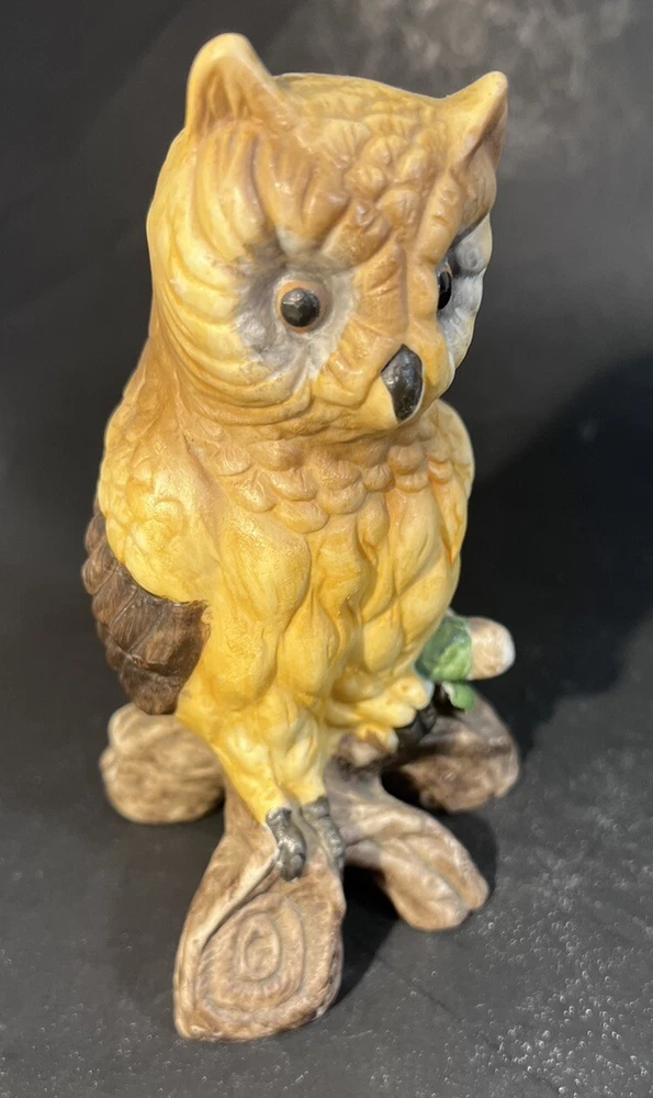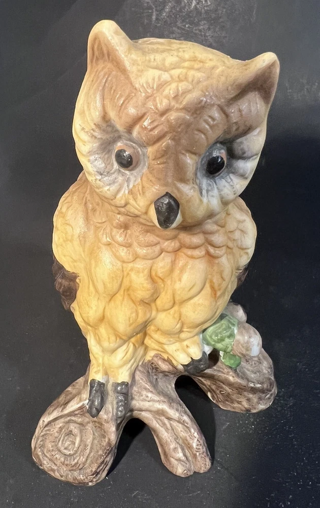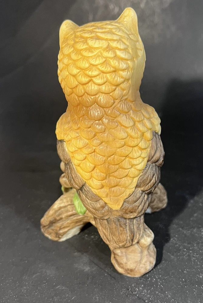 Vintage HOMCO Great Ceramic Porcelain Owl Perched on Log 5 1/2”