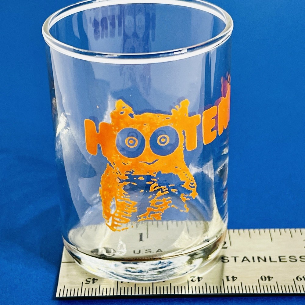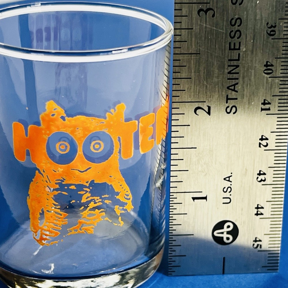 This vintage collectible HOOTERS shot glass holds approximately 3.5 fluid ounces and features a round shape with a painted design of an owl, making it suitable for entertaining at parties or bars. Made of clear glass, this shot glass is dishwasher safe and machine washable, perfect for adding a unique touch to your barware collection. This shot glass is a great addition for fans of the Hooters franchise and collectors of American-themed barware. In great condition, no scratches or chips