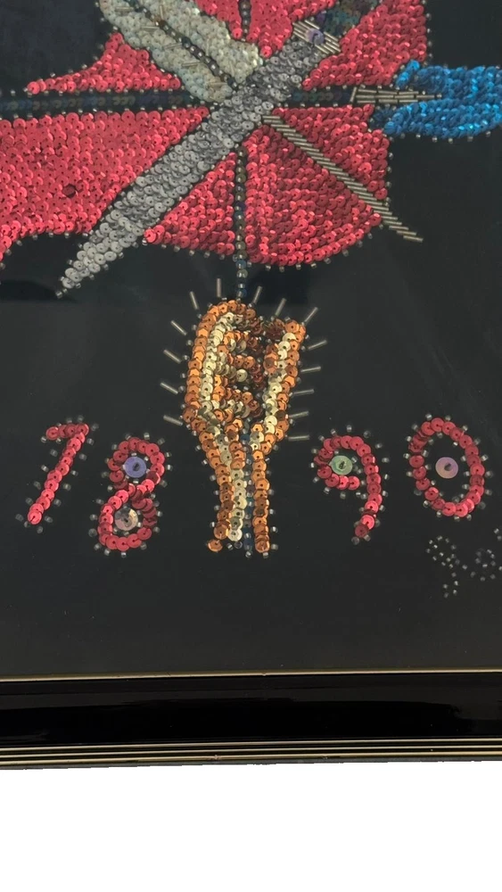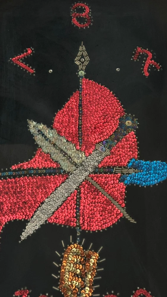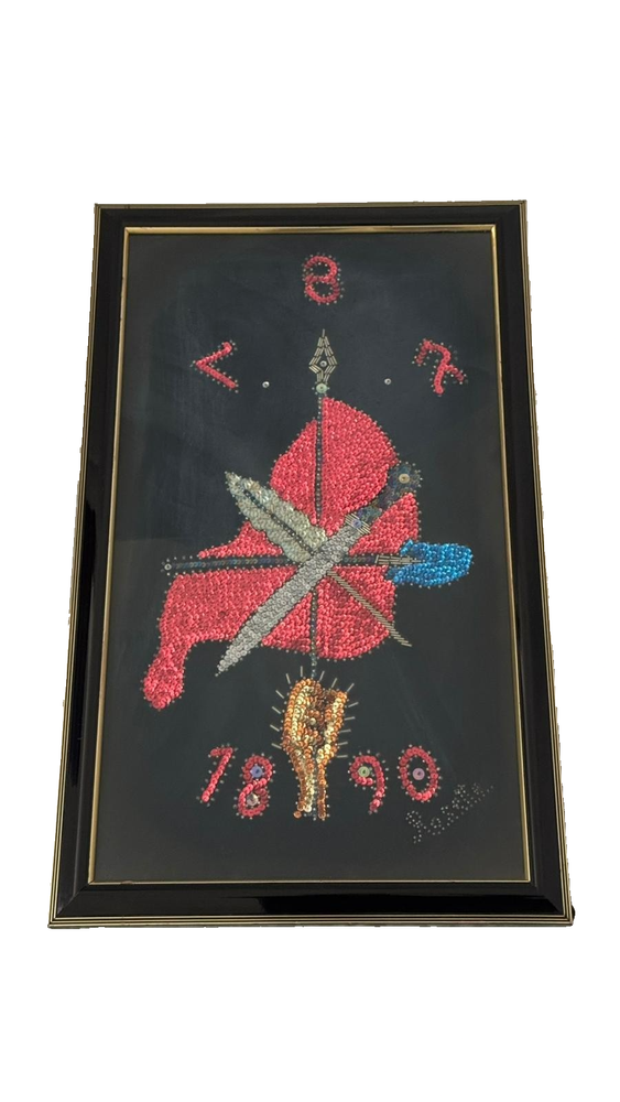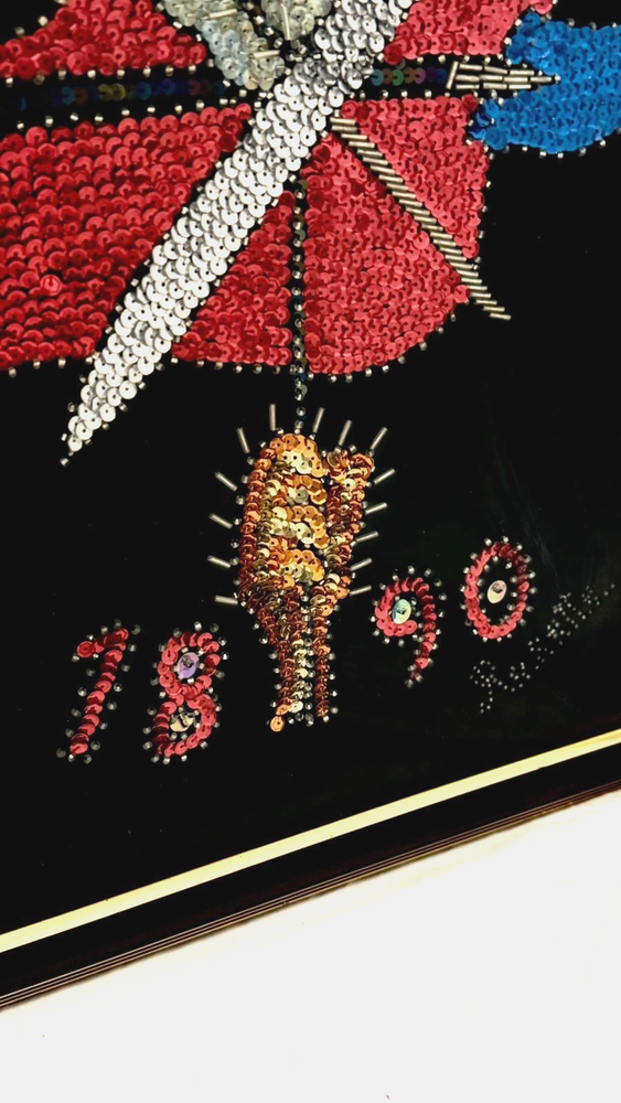 1-Column Ebay Template dewiso.com Haitian Vodou Flag Erzulie Dantor Sequin Bead Art Signed Rosette 27"x16" Framed Vintage Haitian Folk Art Drapo | Pierced Heart Symbol Invoke the spirit of the Caribbean with this rare, hand-sequined Haitian Vodou Flag This vibrant drapeau textile masterpiece depicts the vèvè (sacred symbol) of Erzulie Dantor , the fierce Lwa of protection and motherly love, represented here by a brilliant red heart pierced by a dagger. Dated "1890" in beads, this piece captures the military aesthetic and historical depth of traditional Haitian spirituality. Features and further details Authentic Handcrafted Masterpiece: Created using traditional methods, with thousands of sequins and beads painstakingly sewn by hand over weeks. Powerful Historical & Spiritual Iconography: Depicts Erzulie Dantor, the fierce Lwa of protection, passion, and motherhood—a symbol of strength and resilience. Verified Collector's Provenance: Acquired from a curated luxury estate sale, confirming its status as a valued piece of fine folk art. Stunning Statement Decor: The dramatic contrast and shimmering texture create a captivating focal point for eclectic, bohemian, or global-inspired interiors. Ready for Immediate Display: Professionally framed in a complementary black and gold frame, requiring no additional preparation. This piece has been professionally inspected for condition. is in excellent preserved condition with vibrant sequins and tight bead-work. The external frame has minor scratches and one small dent (see photos), but the piece is solid and ready to hang. It will be secured with bubble wrap, corner protectors, and shipped in a sturdy box to ensure safe arrival. Add to Cart Now — This is a singular opportunity to own a signed "Rosette" flag; only one available! Shipping in 1-2 days. Please contact if you have a question! 🗽LV Antiques: Vintage & Liquidation Emporium🗽 Your trusted source for curated antiques, vintage finds & liquidation deals. Bringing historical charm and modern convenience together - one treasure at a time.