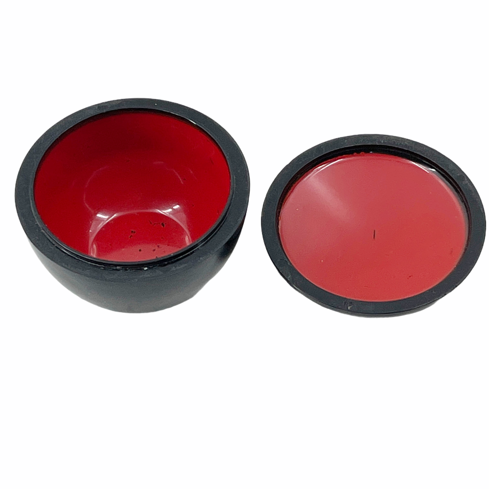 Vintage Hallmark Cards Trinket Box Round Black Plastic Lacquer Dutch Girl Birds 2 3/4" diameter and 2" tall.