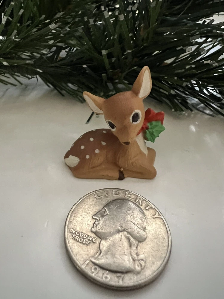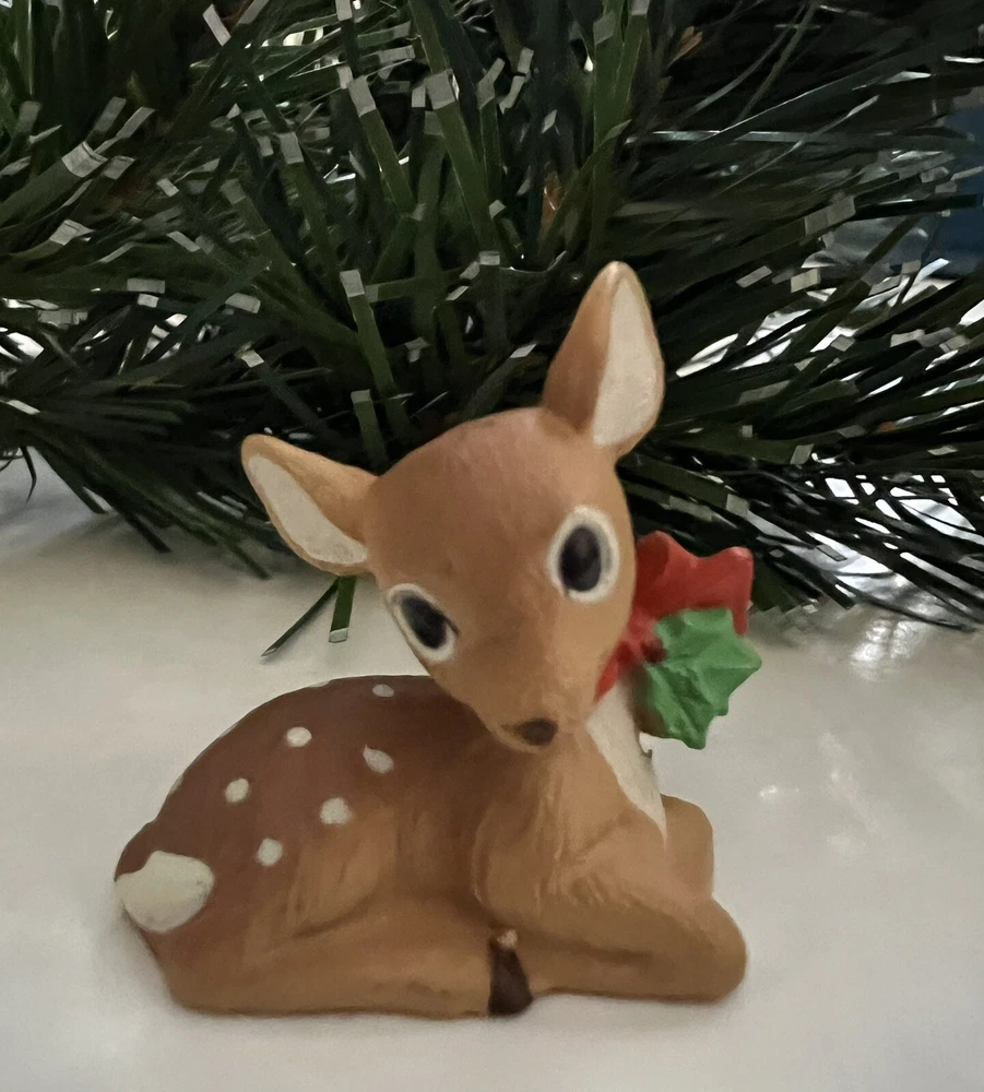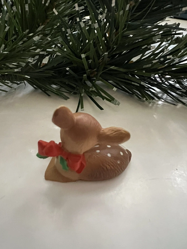 Vintage 1987 Hallmark Merry Miniature Mini featuring a FAWN LYING DOWN with a red bow and green holly around it's neck . He is approximately 1inch high and 1 inch wide. The gold sticker is intact. Very nice! Nice for a small space display or under a very tiny tree. Part of my mother’s massive Hallmark Miniature collection most purchased from store shelf and never displayed. I will be listing from this collection daily. Thank you for checking it out! Shipped USPS Ground Advantage and shipping will automatically be be combined when additional items are placed in your cart.