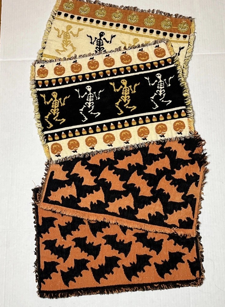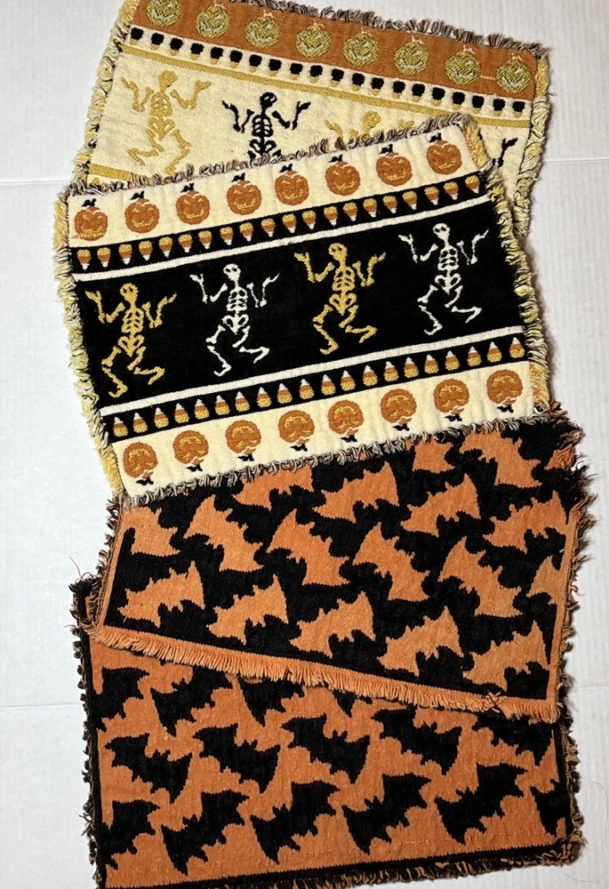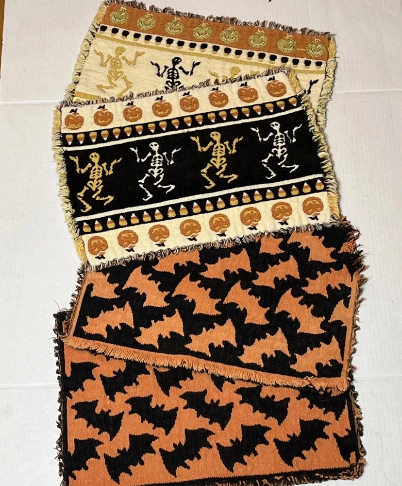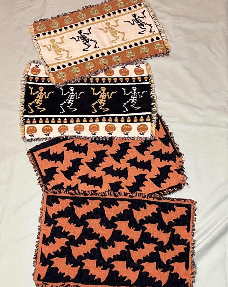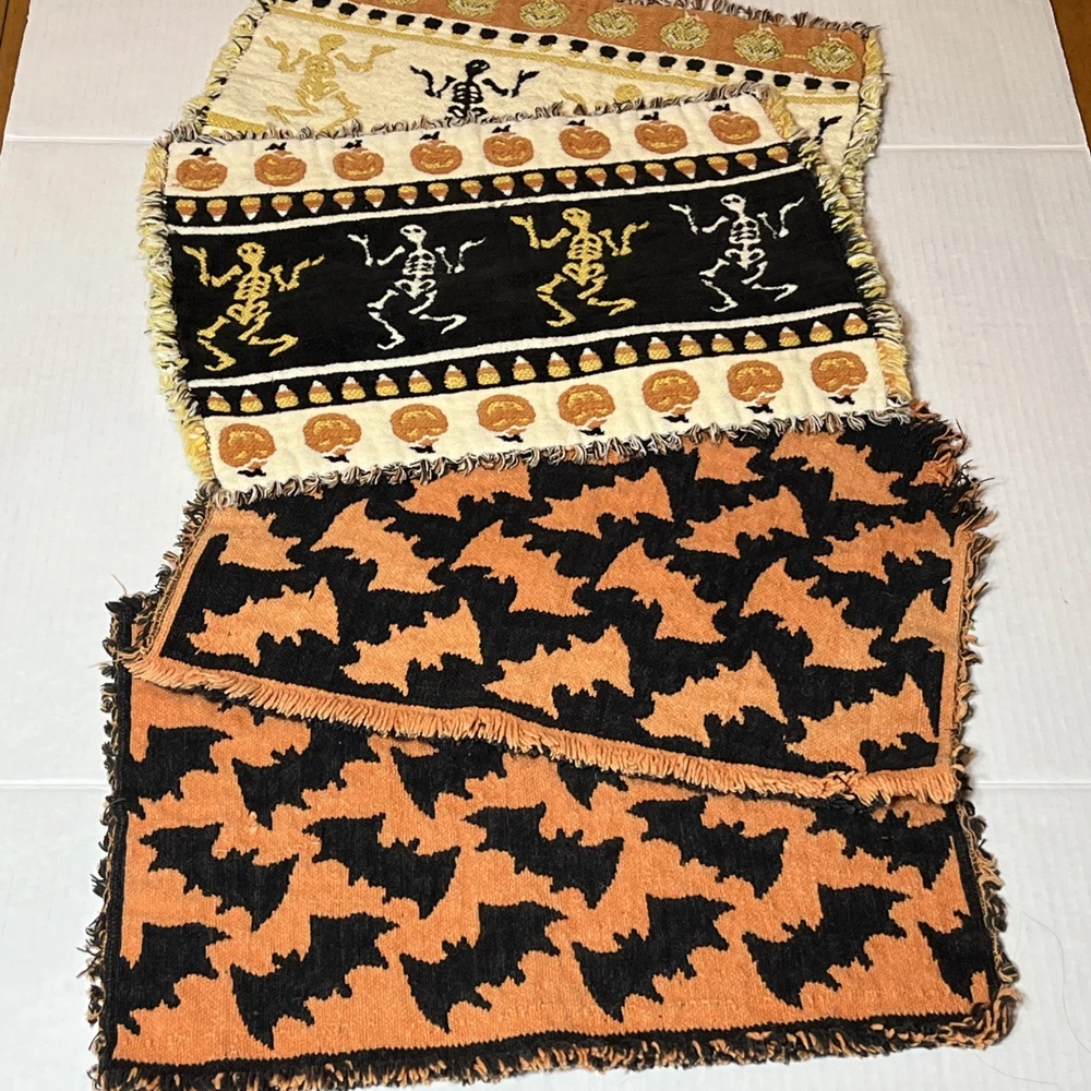Comes As Pictured Double Sided placemats , Colors Are Reversed On Each Side - One Of The Bat Placemats Is Torn On Bottom Right Corner As Pictured - Lot of 4 “16 x 11 inches Great Condition Amy Questions Message Me
