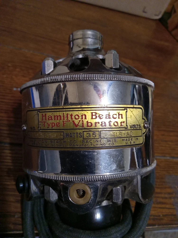 This vintage Hamilton Beach "New Life Vibrator" massage gun is a rare find from the 1920s. It is a unique piece of medical history, made in the United States, and is still in working condition. The device measures 8 inches in length and is a must-have for collectors of science and medicine artifacts.