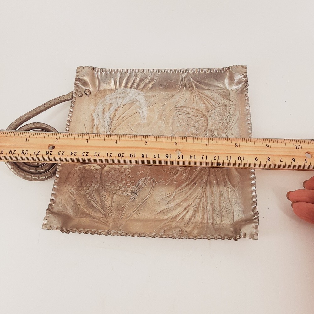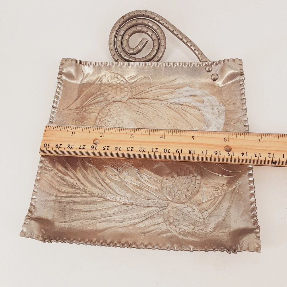 WE APPRECIATE OUR CUSTOMERS THANK YOU FOR SHOPPING WITH US!! Vintage Hammered Aluminum Square Candy Dish Embossed Pine Cone & Needles Handle This vintage hammered aluminum square candy dish features an embossed pinecone and needles design, adding a touch of nature to your collection. Crafted in the United States and made of durable aluminum material, this dish is perfect for storing your favorite candies or trinkets. It is a great addition to any metalware or collectibles collection. *Please look at pictures as they are part of the description/details. *Good Preowned Condition - Light C shaped area in corner of dish - Refer to pictures *Thanks for looking! Please remember items listed as vintage or used will typically show age appropriate wear. I have provided lots of photos for you to see the general condition of each item. If you would like any further photos or information, please contact me and I will be happy to try and help. I do my best to describe items accurately. Pictures are considered part of the description. Cameras and/or computers can sometimes slightly alter colors. Any measurements should be considered approximate. If you need an exact measurement, please ask. Terms and Conditions : Once a purchase has been made, it is legally binding contract. Payments: Payment is due when purchase is made, Thank you for your prompt payment. *If payment is not received within 4 days of purchase, then a Non-Paying Buyer Dispute will be filed, and eBay may mark it against your account. SHIPPING: We ship daily (Mon-Fri not to include holidays) and will ship within two business day of receiving payment! I do accept returns if you are unhappy with your item for any reason. I ask that it be returned in the original condition you received it in. I take pride in shipping items carefully. However, if an item arrives damaged, please contact me immediately. All shipping materials (box, poly bag, bubble wrap, paper, etc.) must be kept, as well as it is necessary to take 7 pictures to document exterior damage of the box, as well as the interior damage of the item(s) that was purchased. This documentation is required to file a damage claim with both USPS and UPS. Upon Receiving : If you are satisfied with your product(s), please leave some positive feedback. *We love hearing that you have received your purchase(s), and are content, delighted, and untroubled. *Once you receive your purchase(s), please inspect them for any damage during transit. Report any damage within 24hrs via eBay e-mail. Return Policy : You may return unworn, unwashed merchandise in its original condition with all tags attached. If you bought a brand-new item, it MUST be returned brand new (Sealed and Any returns MUST be sent back to us complete and in the same condition as delivered to you Unopened). Items must be in new or original condition (free of odor, markings etc.) and ready for resale. Any serial or product numbers must match the purchased item for refund. PLEASE NOTE that shipping will not be refunded . Upon time of purchase, you are agreeing to this return policy. CHECKOUT: Please make sure that your address on file with eBay is complete and correct as we must use the address you have with eBay. *If you have any questions about your purchase, delivery, or a possible product return; Please contact us immediately and directly through your eBay accounts message center! *We are Eco-Friendly, leaving the lightest possible impact on our environment! Whenever possible we will reuse packing material to aid with our Eco goals. Customer service and feedback: If you have any questions about your purchase, delivery, or a possible product return; Please contact us immediately and directly through your eBay account message center! Your satisfaction is our top priority! Our goal is to earn your 5-star 100% feedback. Thank You for buying from us!