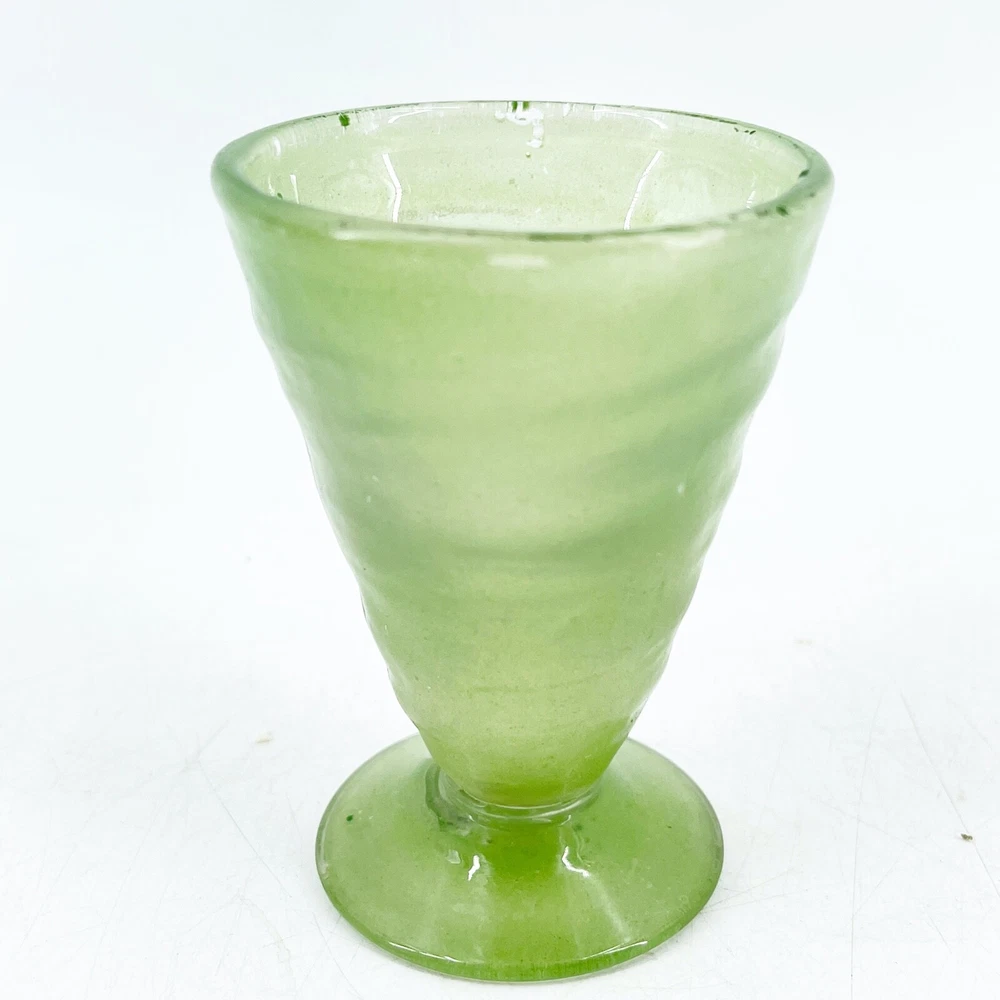 Vintage Hand Blown Swirl Art Glass Footed 4 Sherbet Tumbler Cup Green 2 1/4" diameter at top rim and 3 1/8" tall. Visible rough pontil on base.