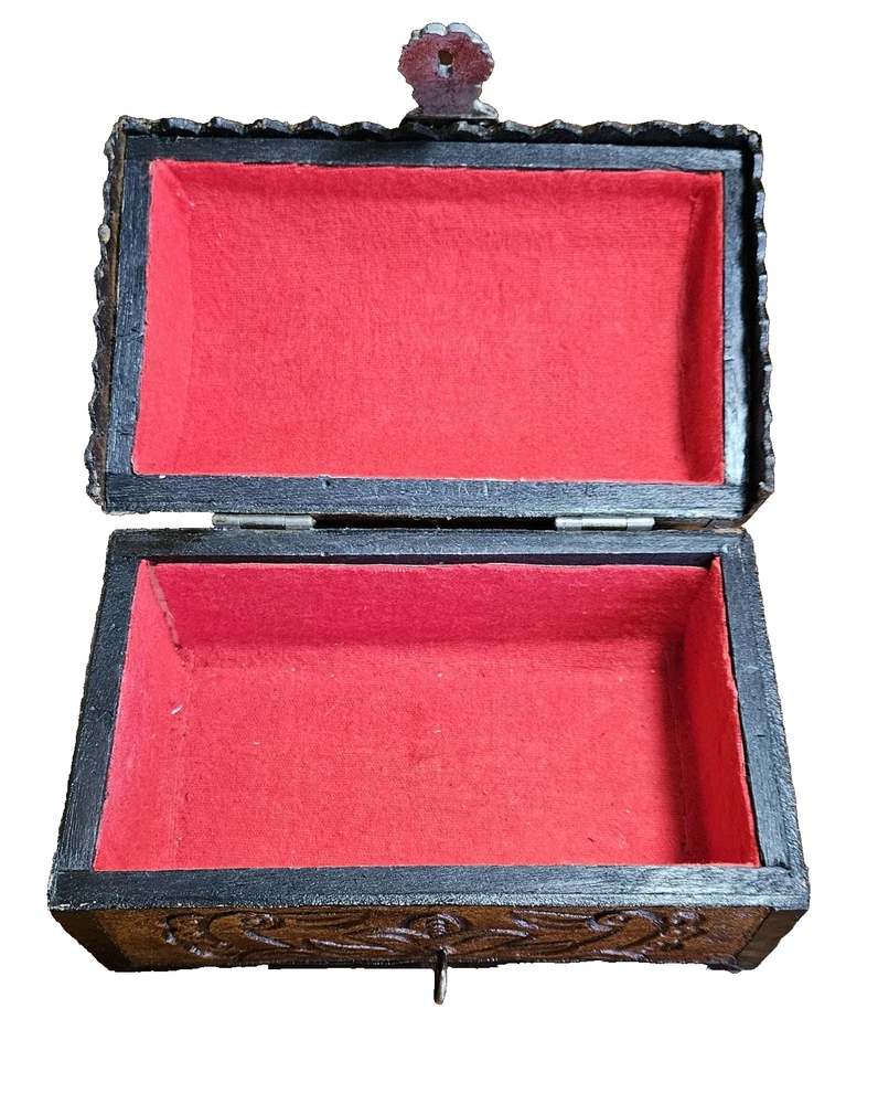 $ 2.64Magnificent Vintage Hand Carved Wood Asian Trinket Jewelry Box w/ Metal Clasp