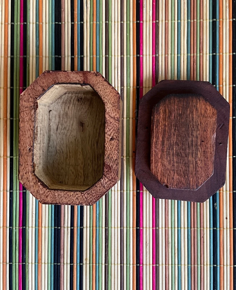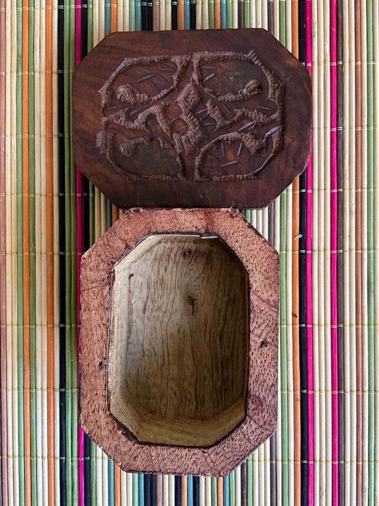 Vintage Hand Carved Lidded Octagonal Wooden Trinket Jewelry Box
