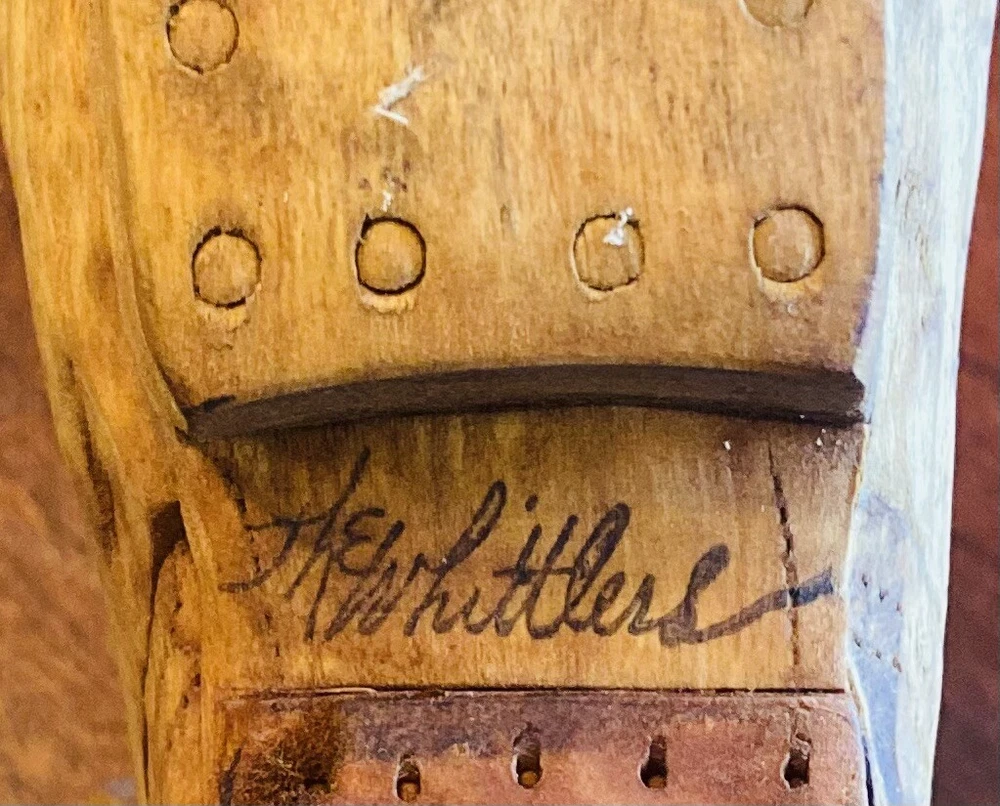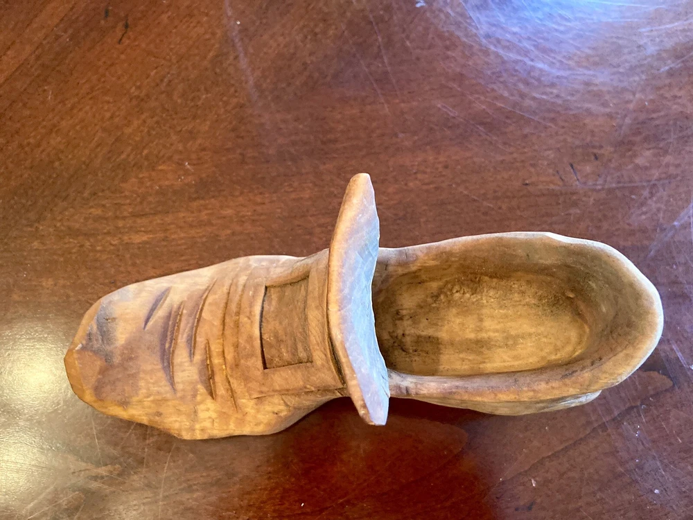 This vintage hand-carved wooden shoe is a beautiful example of colonial style. Crafted by The Whittlers, this shoe is a unique piece that will add charm to any collection. The shoe is signed and was made in the United States during the 1970s. It is a handmade item and is in excellent condition. The shoe would make a great addition to any decorative collection or as a unique gift for a loved one.