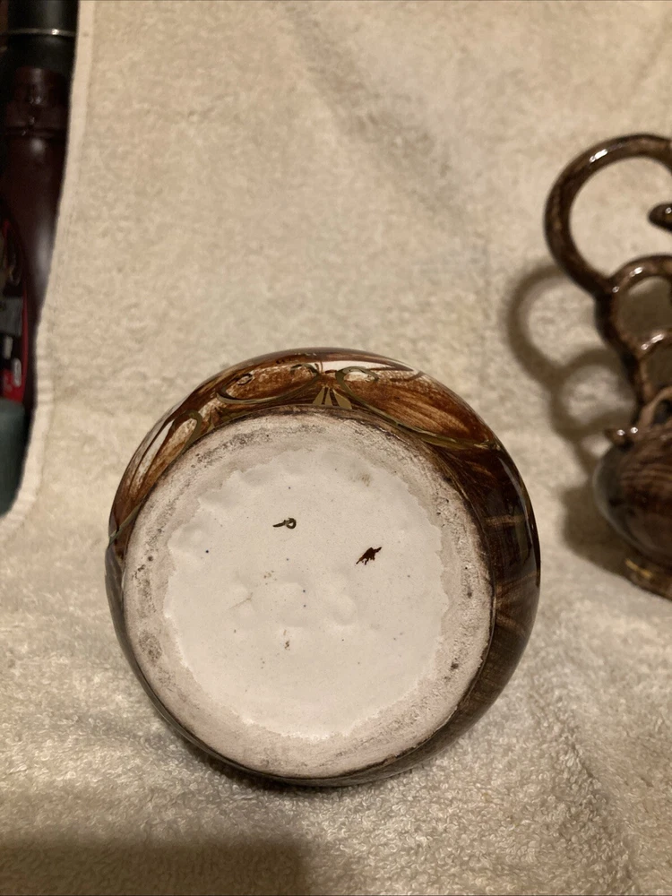 This vintage vase/pitcher is a unique addition to any collection. Hand painted by Hubert Bequet, this piece showcases exquisite craftsmanship. The porcelain and ceramic materials used in its construction give it a high-quality feel. Its colorful finish adds a touch of whimsy to any decor. This item was manufactured in Belgium between 1920-1949 and features a beautiful multicolor design. The vase/pitcher is in great shape and is perfect for display or use. It would make a wonderful gift for any collector or admirer of fine art.