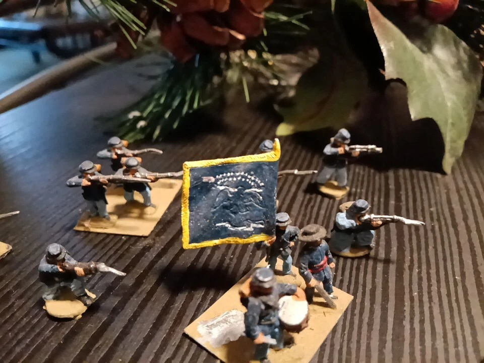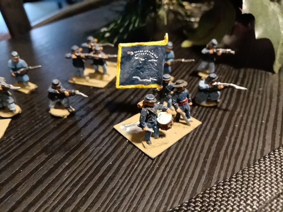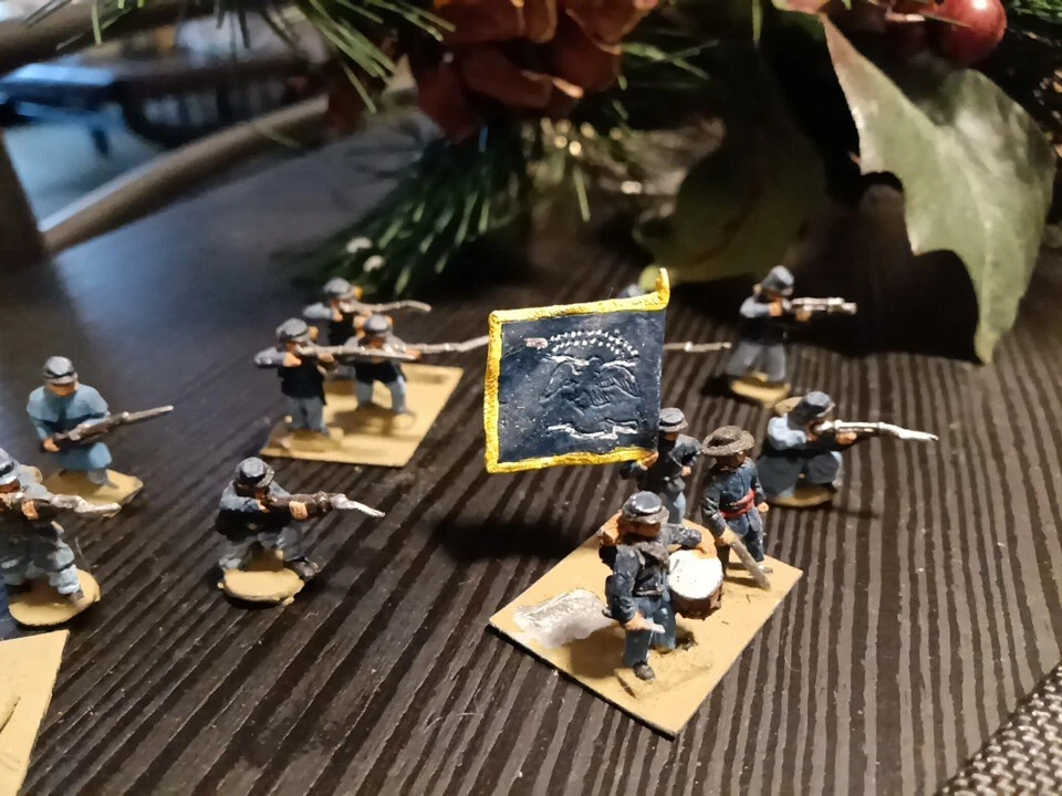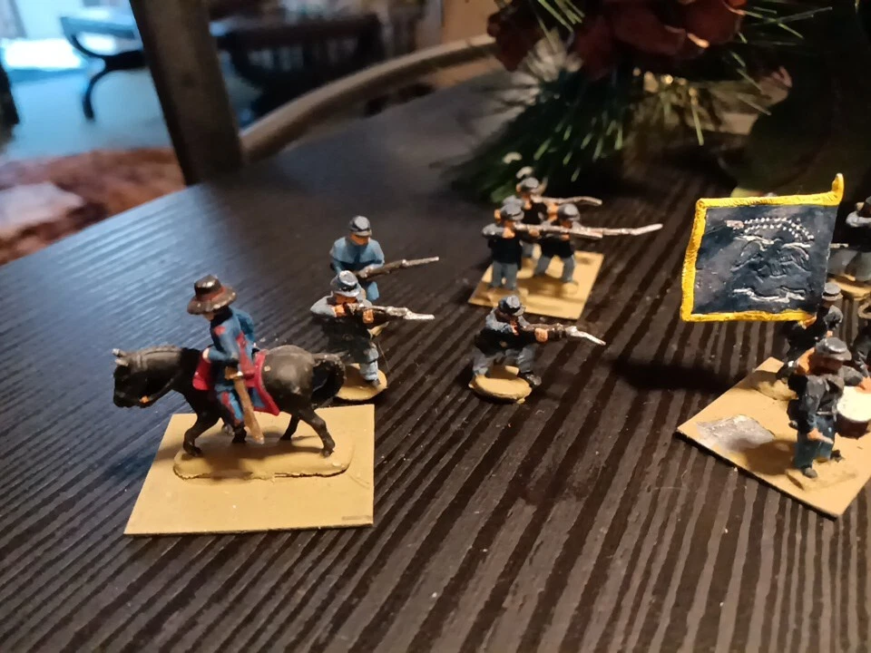The vintage hand-painted Civil War soldiers are toy soldiers made of lead, specifically infantry figures. These soldiers are designed to depict a scene from the Civil War era and are considered collectible items in the toy soldier category. The intricate detailing and historical accuracy of the painting make them a desirable piece for collectors interested in military history and vintage toys.