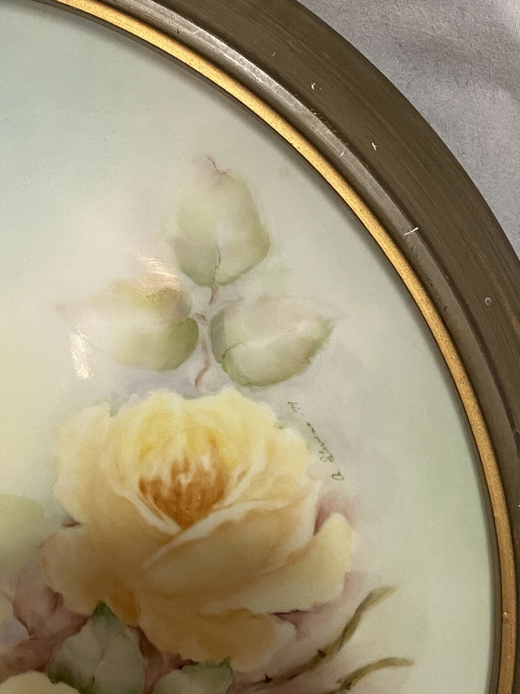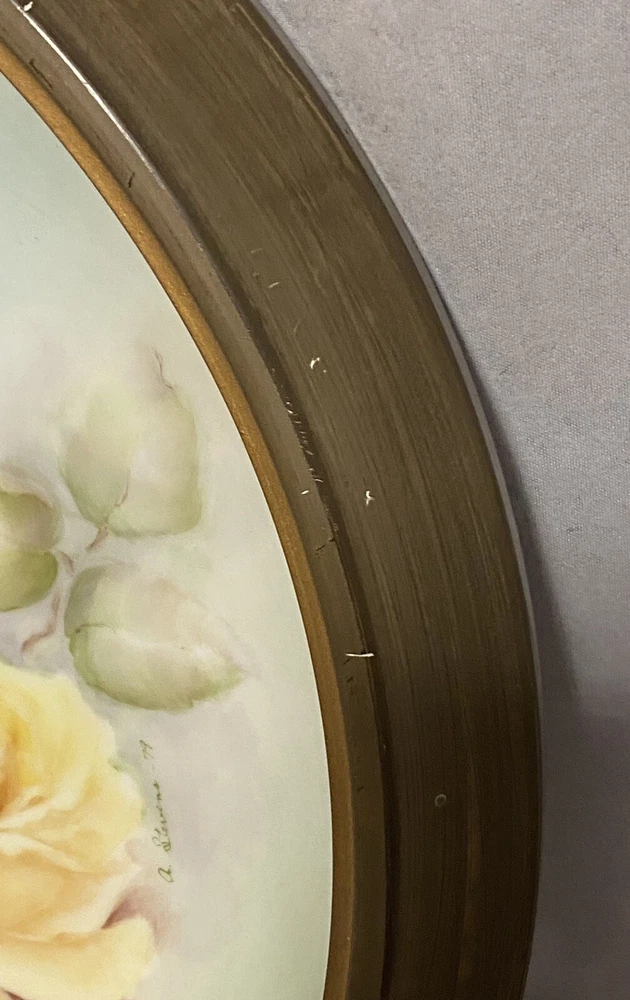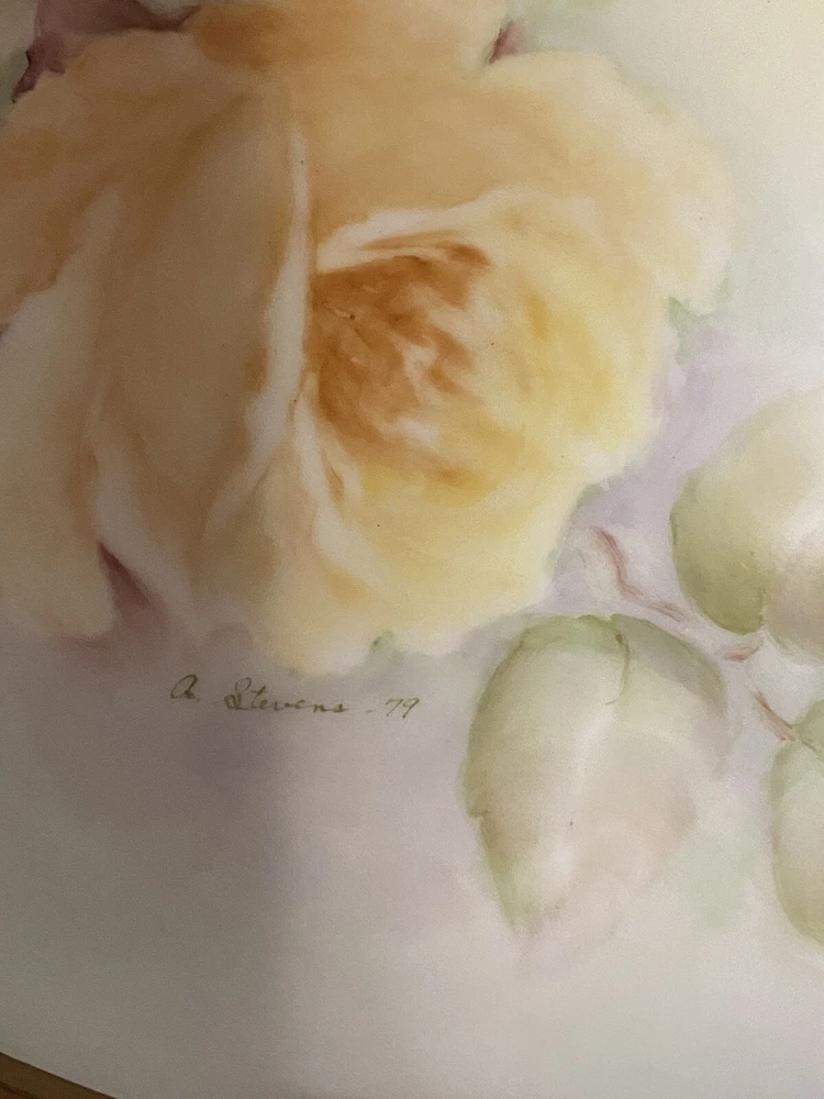 A. Stevens 1979 Hand Painted Plate In Frame Please see photos for condition. This is preowned and may have flaws. There is wear to the plate frame.