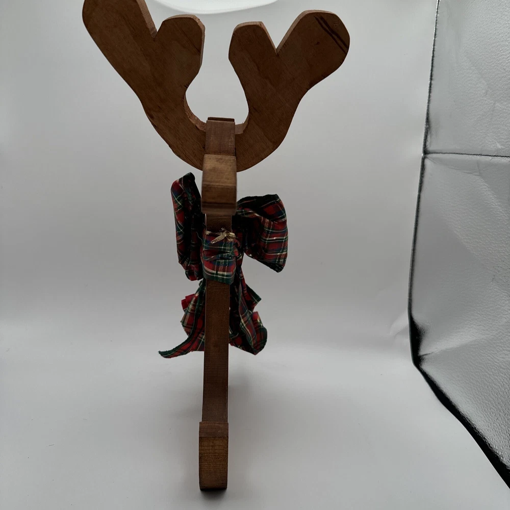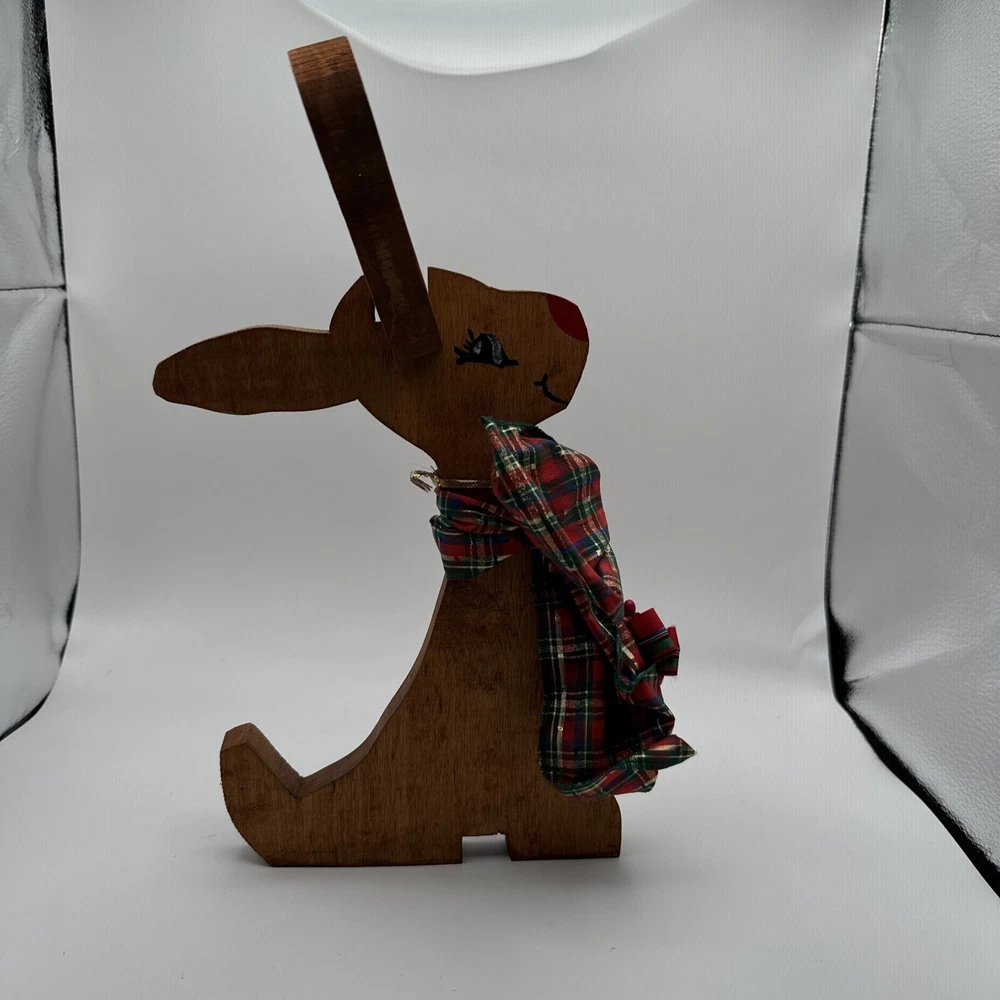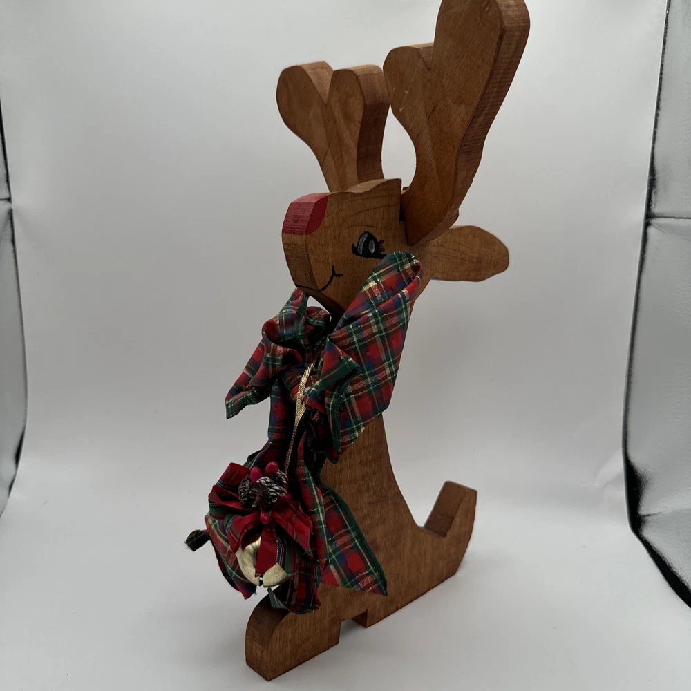 Vintage Hand Painted Wood Reindeer Christmas Decoration 15” Pre-owned. Some wear as shown. See measurements and pictures.