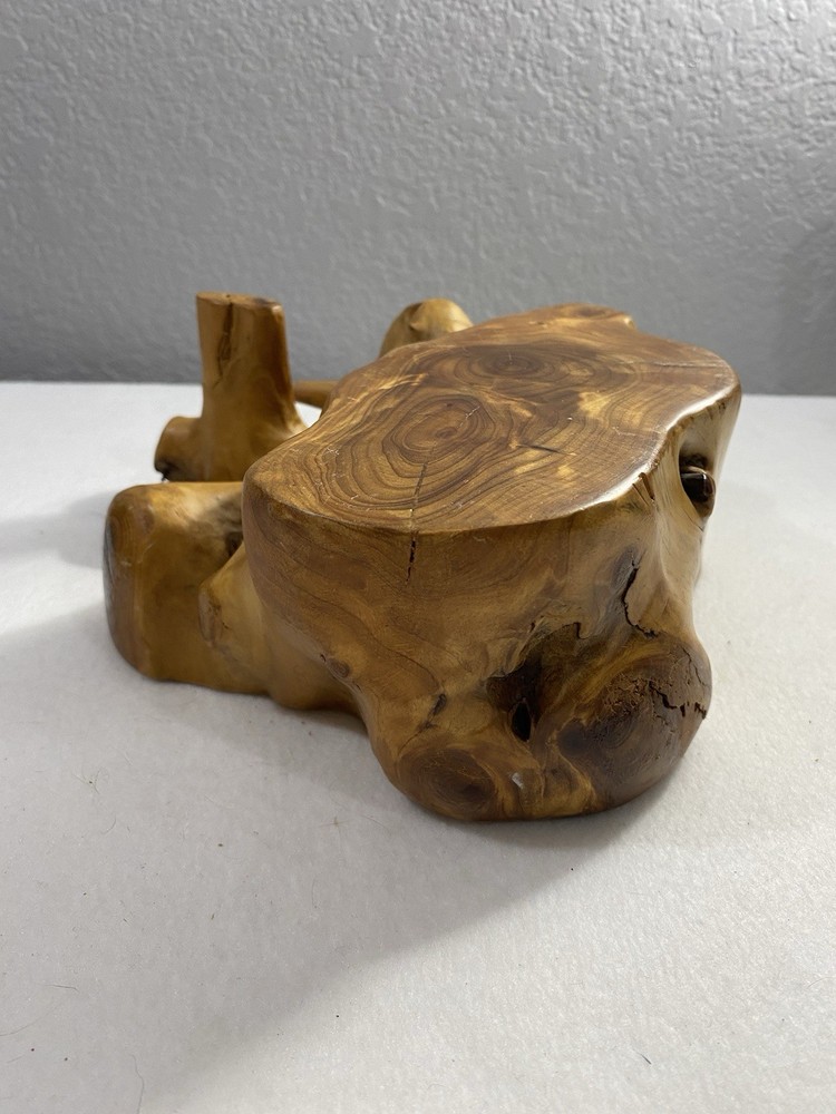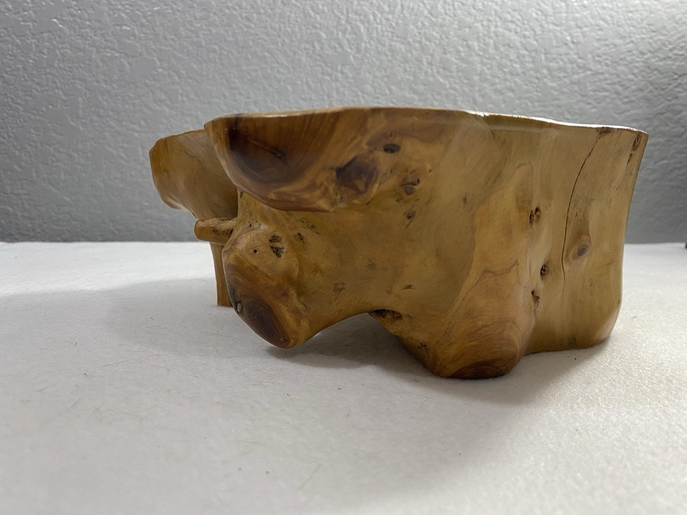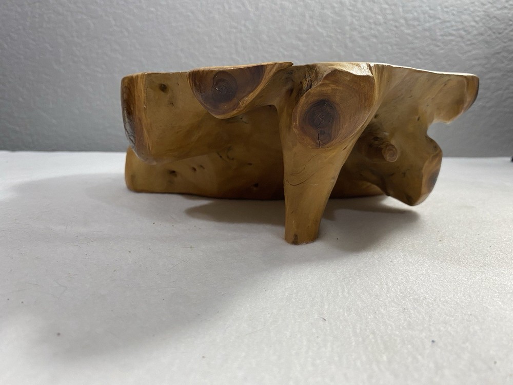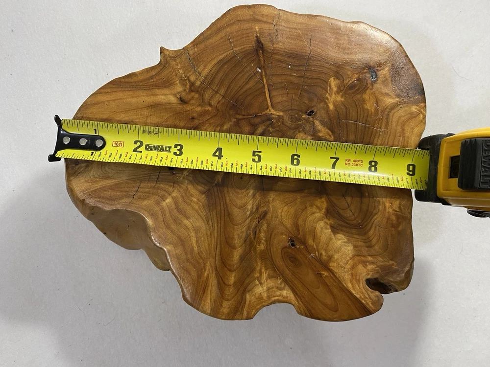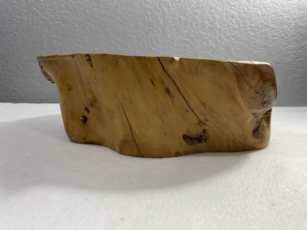 The vintage hand-carved knotted burl/cedar wood root art base/stand is a unique and artistic pedestal stand that adds a touch of nature to any home decor. Made from burl wood with a knotted design, this base/stand has a height of 31/4 inches and a width of 8 inches, making it versatile for displaying various items in your living space. The aroma of cedar adds an extra sensory element to this piece, creating a relaxing and inviting atmosphere in your home. Smells so good. !!