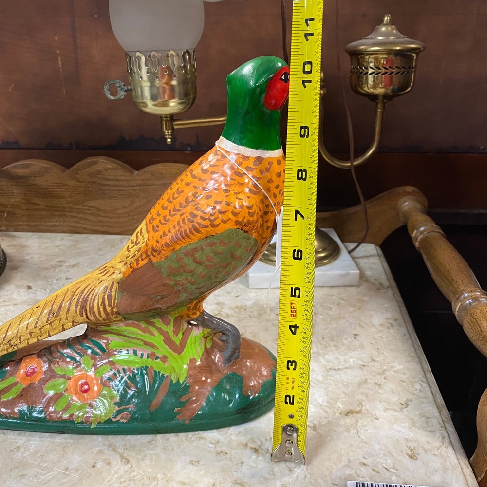 Bring a touch of rustic charm and timeless elegance to your home with this vintage ceramic pheasant figurine. Measuring approximately 10 inches tall and 15 inches long, this beautifully hand-painted piece showcases vibrant hues of green, gold, red, and earthy browns, capturing the pheasant's natural beauty in exquisite detail. Perfect as a centerpiece for your mantle, shelf, or table, this mid-century treasure adds character and a hint of countryside nostalgia to any decor style—whether farmhouse, traditional, or eclectic. Its solid ceramic construction ensures durability, making it a wonderful heirloom-quality item for collectors and bird enthusiasts alike.