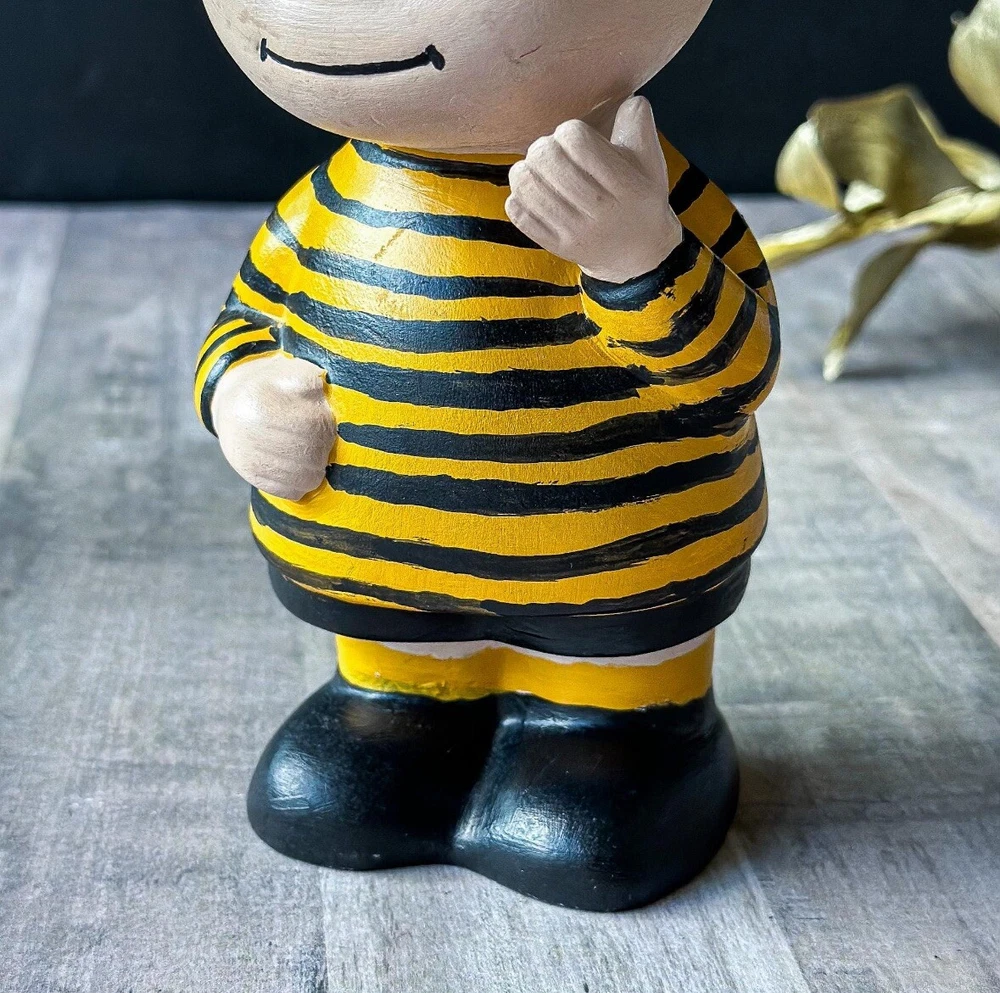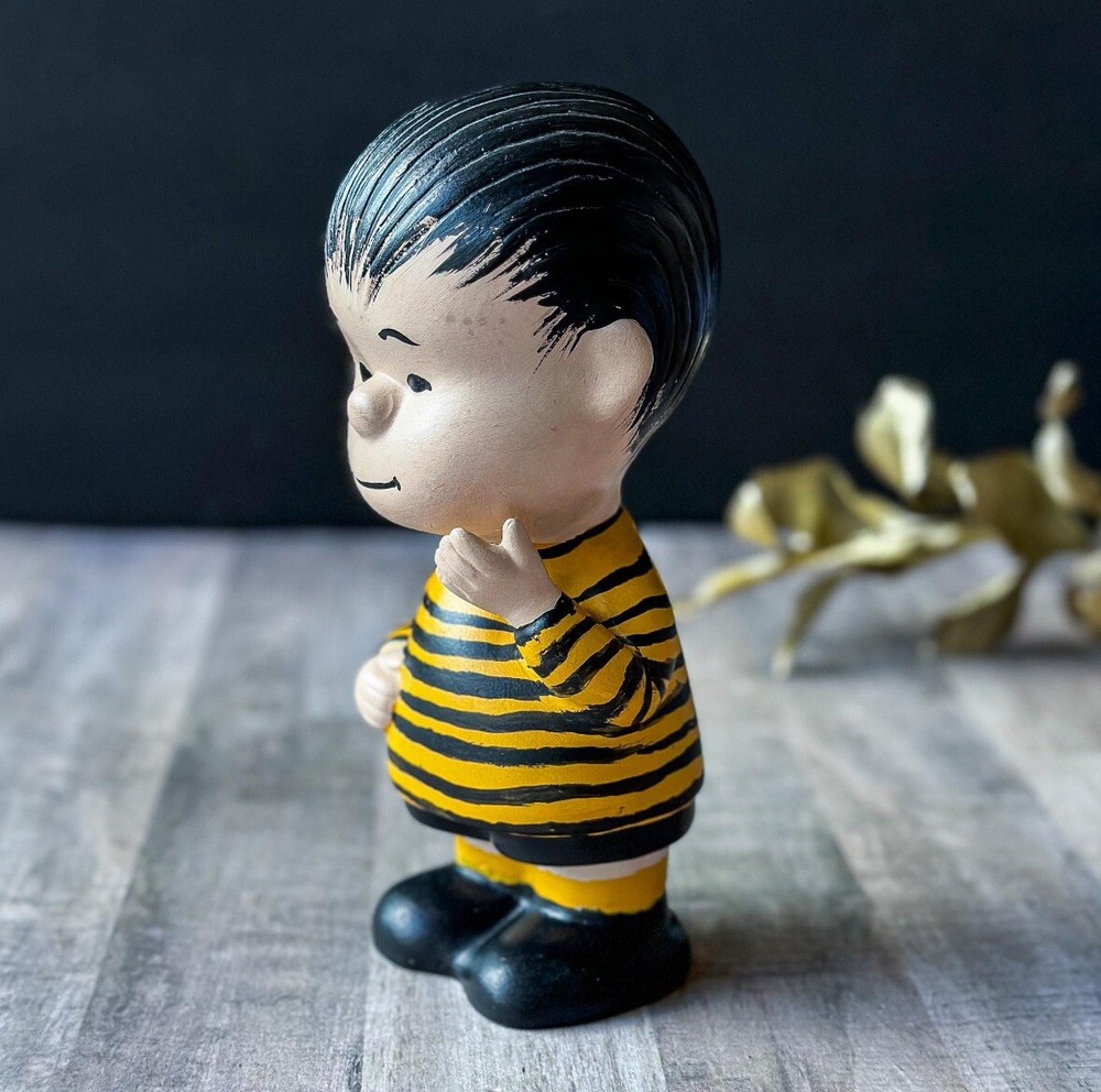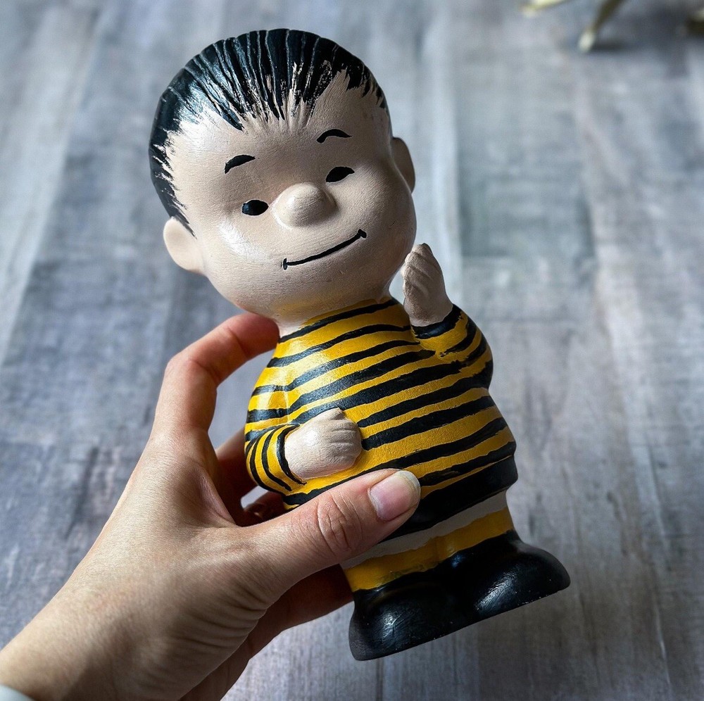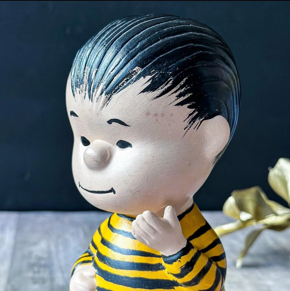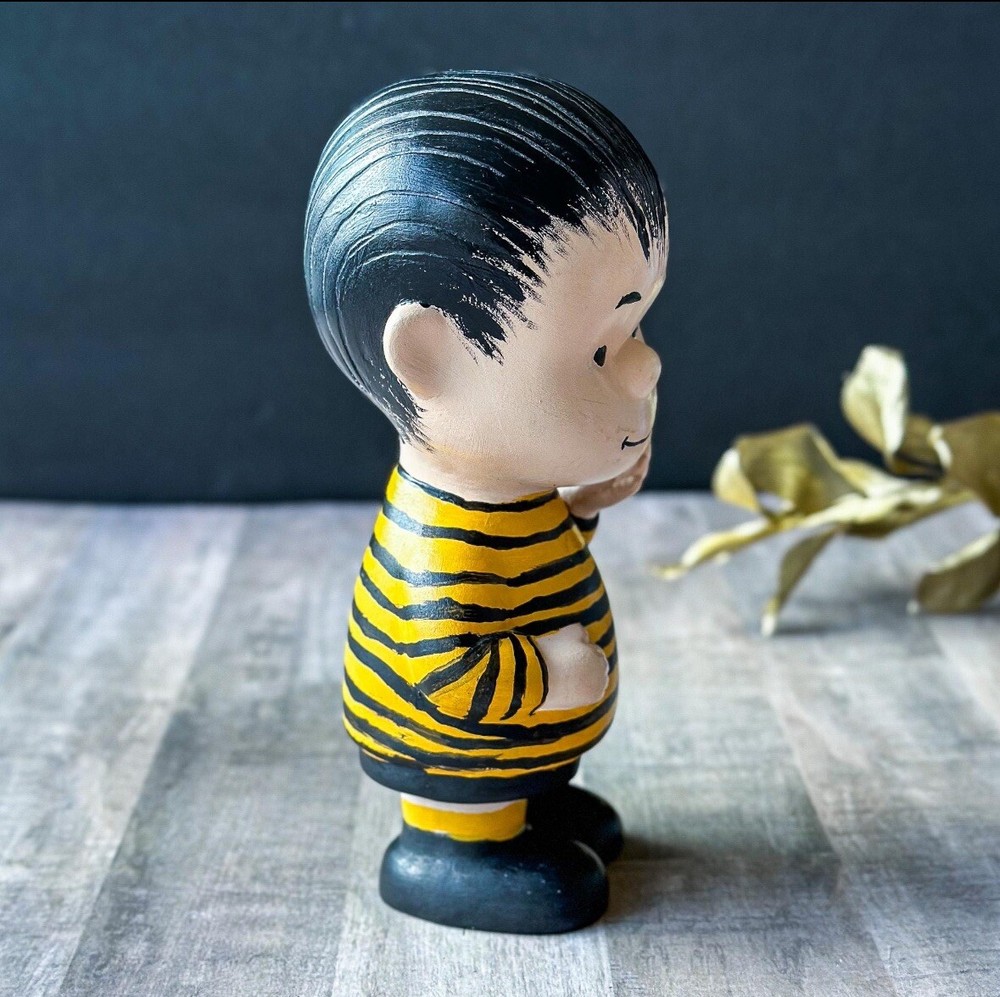 Add nostalgic charm to your collection with this vintage Linus figurine from the iconic Peanuts series by Charles Schulz. Created in the 1970s by United Feature Syndicate, this hand-painted ceramic piece captures Linus Van Pelt in exquisite detail. Measuring 3.5" wide, 8" tall, and 3.5" deep, it's perfect for display. The figurine is in good vintage condition with minor wear, adding to its character and authenticity. A must-have for Peanuts fans and collectors of vintage memorabilia.
