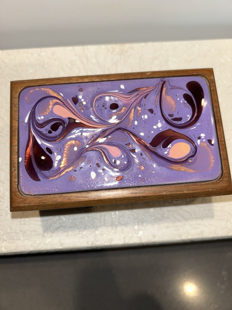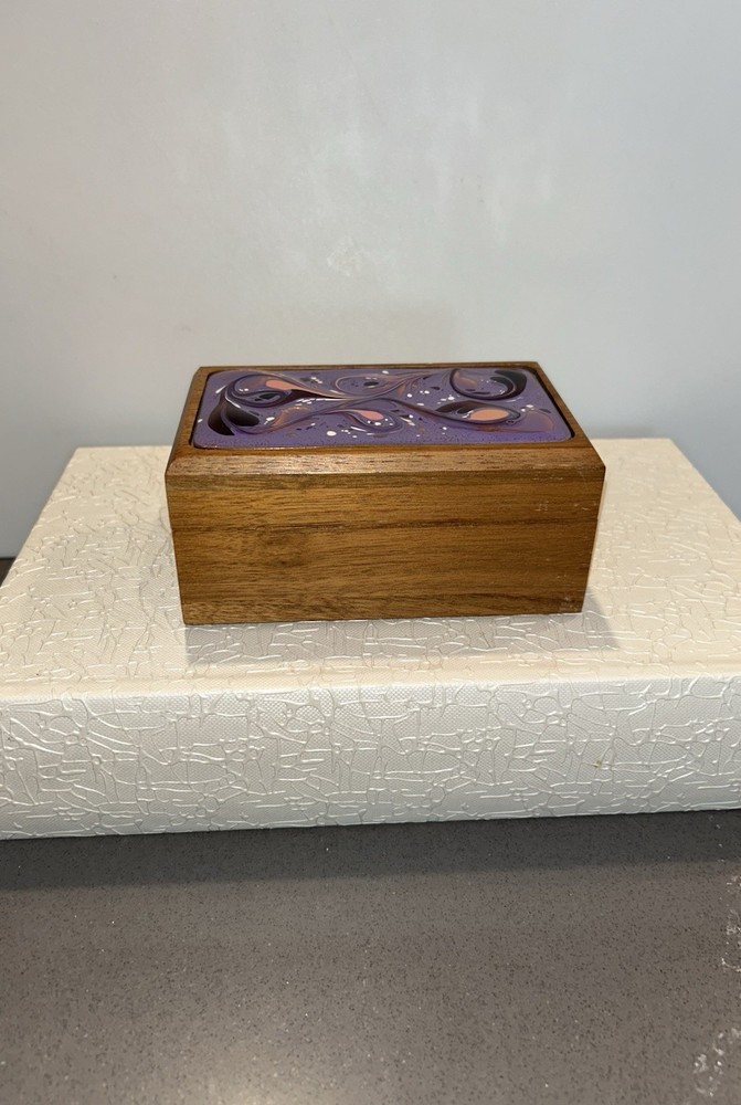 Vintage Hand Enameled Lid Wooden Trinket Jewelry Box