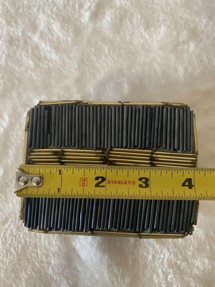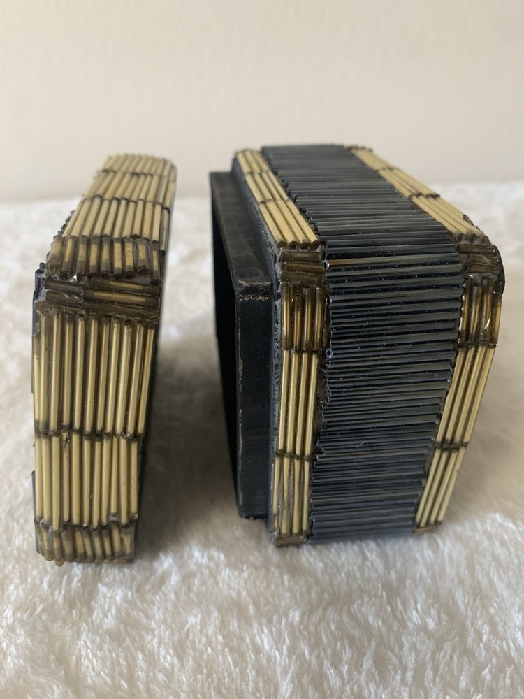This vintage beaded trinket box is a charming addition to any room. Handmade with a multicolor design, this small rectangular box is perfect for storing jewelry or other small items. Ideal for all occasions, this unique piece adds a touch of artistry to your decor. The trinket box comes packaged in a box and is suitable for furniture use. Clean with a damp cloth to maintain its appearance, this original piece from the Keepsake Boxes collection is a lovely addition to any home.