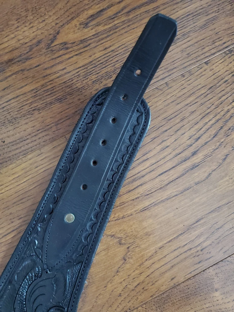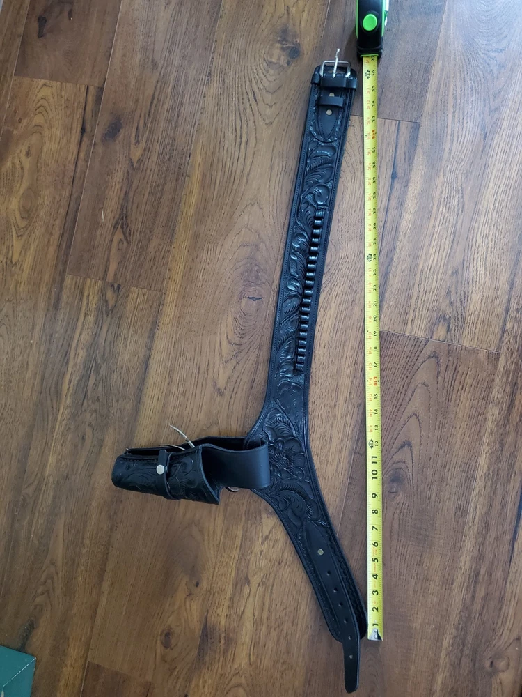 Handmade Leather Gun Holster Belt 10 Cartridge Holders Made in Mexico 34/38 Vintage, see pics for measurements, good condition, as pictured, no returns. Shipped USPS